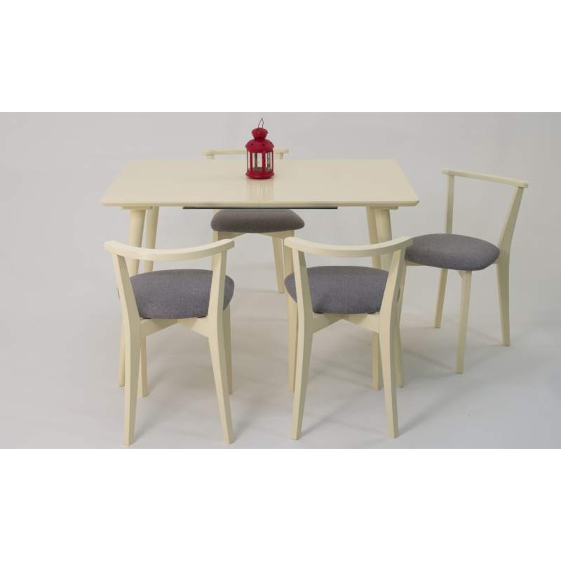 Стол Монте 120 слоновая кость со стульями Франк слоновая кость рогожка серый