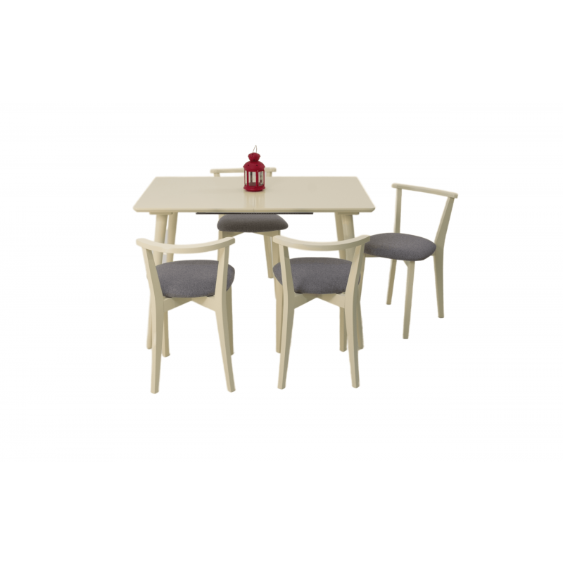 Комплект из деревянного стола Монте на каркасе из натурального дерева и 4 стула Франк отлично подойдет к интерьеру, выдержанному в скандинавском стиле. Данный комплект станет центральным элементом в гостиной, столовой зоне, на кухне, позволив создать уютное обеденное место, где смогут собираться члены дружной семьи и их гости.У модели прямоугольная форма столешницы, со скруглением углов. Такое решение исключит риск сколов и обеспечит безопасность, в том числе, детям.Комплект выполнен в красивом цвете - слоновая кость. Сочетание изысканного дизайна и высокого качества исполнения - главная особенность комплекта.Столешница выполнена из материалов с великолепными эксплуатационными свойствами - МДФ (Материал создается на основе натуральной древесины. Практичен, надежен, имеет однородную гладкую структуру), шпон.Мебель проста в уходе - для поддержания первозданного вида достаточно использовать простую чуть влажную салфетку по мере необходимости.Состав комплекта: Стол F514130S00 120x80x75 и 4 стула R100709S01 44x53x73