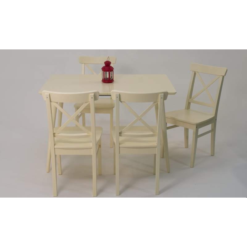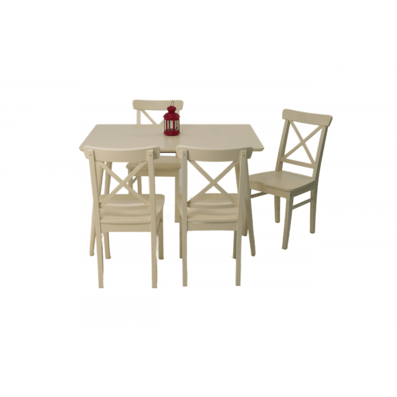 Комплект из деревянного стола Монте на каркасе из натурального дерева и 4 стула Ингольф отлично подойдет к интерьеру, выдержанному в скандинавском стиле. Данный комплект станет центральным элементом в гостиной, столовой зоне, на кухне, позволив создать уютное обеденное место, где смогут собираться члены дружной семьи и их гости.У модели прямоугольная форма столешницы, со скруглением углов. Такое решение исключит риск сколов и обеспечит безопасность, в том числе, детям.Комплект выполнен в красивом цвете - слоновая кость. Сочетание изысканного дизайна и высокого качества исполнения - главная особенность комплекта.Столешница выполнена из материалов с великолепными эксплуатационными свойствами - МДФ (Материал создается на основе натуральной древесины. Практичен, надежен, имеет однородную гладкую структуру), шпон.Мебель проста в уходе - для поддержания первозданного вида достаточно использовать простую чуть влажную салфетку по мере необходимости.Состав комплекта: Стол F514130S00 120x80x75 и 4 стула R100741S0055x43x90
