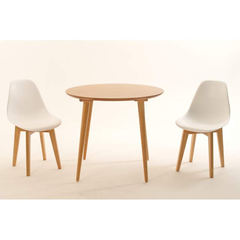 Комплект из деревянного стола Монте на каркасе из натурального дерева и 2 стула Сашш отлично подойдет к интерьеру, выдержанному в скандинавском стиле. Данный комплект станет центральным элементом в гостиной, столовой зоне, на кухне, позволив создать уютное обеденное место, где смогут собираться члены дружной семьи и их гости.У модели круглая форма столешницы. Такое решение исключит риск сколов и обеспечит безопасность, в том числе, детям.Комплект выполнен в красивом цвете - натуральный. Сочетание изысканного дизайна и высокого качества исполнения - главная особенность комплекта.Столешница выполнена из материалов с великолепными эксплуатационными свойствами - МДФ (Материал создается на основе натуральной древесины. Практичен, надежен, имеет однородную гладкую структуру), шпон.Мебель проста в уходе - для поддержания первозданного вида достаточно использовать простую чуть влажную салфетку по мере необходимости.Состав комплекта:- стол F004136N00- стулья R100774NAA