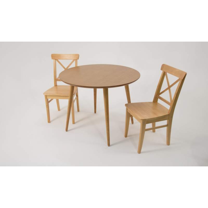 Комплект из деревянного стола Монте на каркасе из натурального дерева и 2 стула Ингольф отлично подойдет к интерьеру, выдержанному в скандинавском стиле. Данный комплект станет центральным элементом в гостиной, столовой зоне, на кухне, позволив создать уютное обеденное место, где смогут собираться члены дружной семьи и их гости.У модели круглая форма столешницы. Такое решение исключит риск сколов и обеспечит безопасность, в том числе, детям.Комплект выполнен в красивой комбинации цветов - орех, слоновая кость. Сочетание изысканного дизайна и высокого качества исполнения - главная особенность комплекта.Столешница выполнена из материалов с великолепными эксплуатационными свойствами - МДФ (Материал создается на основе натуральной древесины. Практичен, надежен, имеет однородную гладкую структуру), шпон.Мебель проста в уходе - для поддержания первозданного вида достаточно использовать простую чуть влажную салфетку по мере необходимости.Состав комплекта:- стол F004145N00- стулья R100743N00