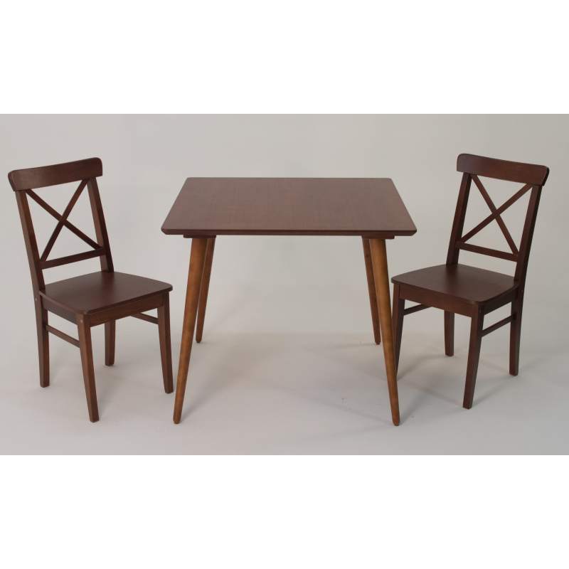Комплект из деревянного стола Монте на каркасе из натурального дерева и 2 стула Ингольф отлично подойдет к интерьеру, выдержанному в скандинавском стиле. Данный комплект станет центральным элементом в гостиной, столовой зоне, на кухне, позволив создать уютное обеденное место, где смогут собираться члены дружной семьи и их гости.У модели квадратная форма столешницы, со скруглением углов. Такое решение исключит риск сколов и обеспечит безопасность, в том числе, детям.Комплект выполнен в красивой комбинации цветов - орех, слоновая кость. Сочетание изысканного дизайна и высокого качества исполнения - главная особенность комплекта.Столешница выполнена из материалов с великолепными эксплуатационными свойствами - МДФ (Материал создается на основе натуральной древесины. Практичен, надежен, имеет однородную гладкую структуру), шпон.Мебель проста в уходе - для поддержания первозданного вида достаточно использовать простую чуть влажную салфетку по мере необходимости.Состав комплекта:- стол F404144W00- стулья R100742W00