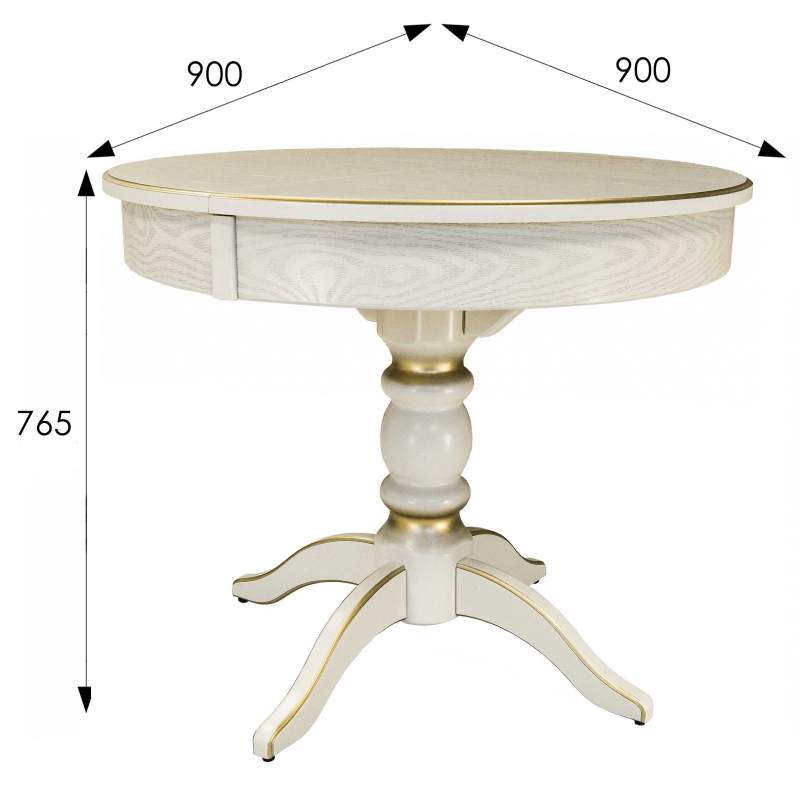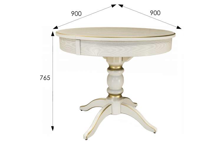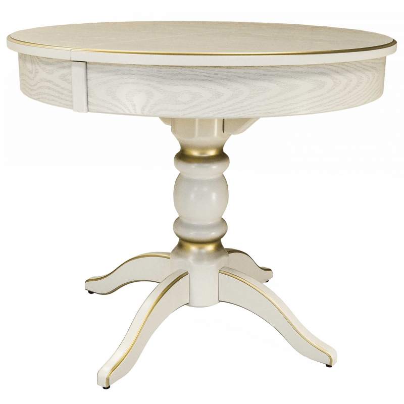 Стол обеденный Фидея 4 раздвижной слоновая кость/золото 90/130*90