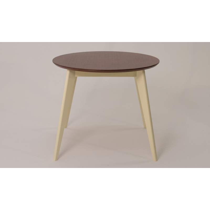 Стол обеденный круглый Сканди К90, слоновая кость/орех