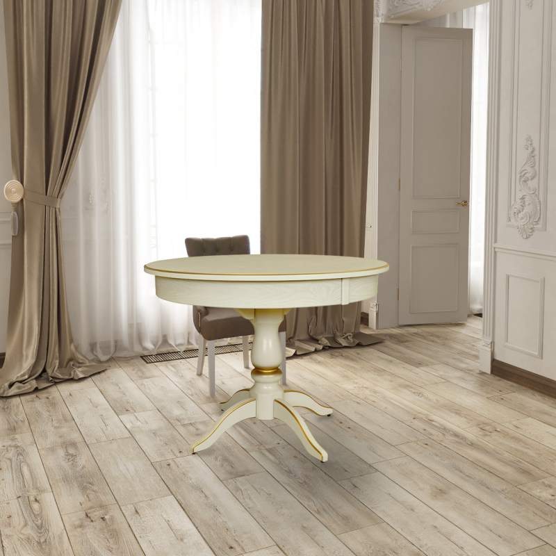 Стол обеденный Моро 04 раздвижной слоновая кость/золото 100/140*100
