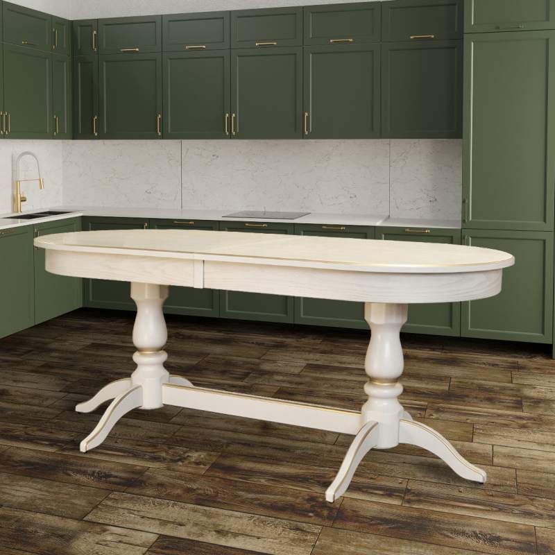 Стол обеденный Тарун 5 раздвижной слоновая кость/золото 190/250*84