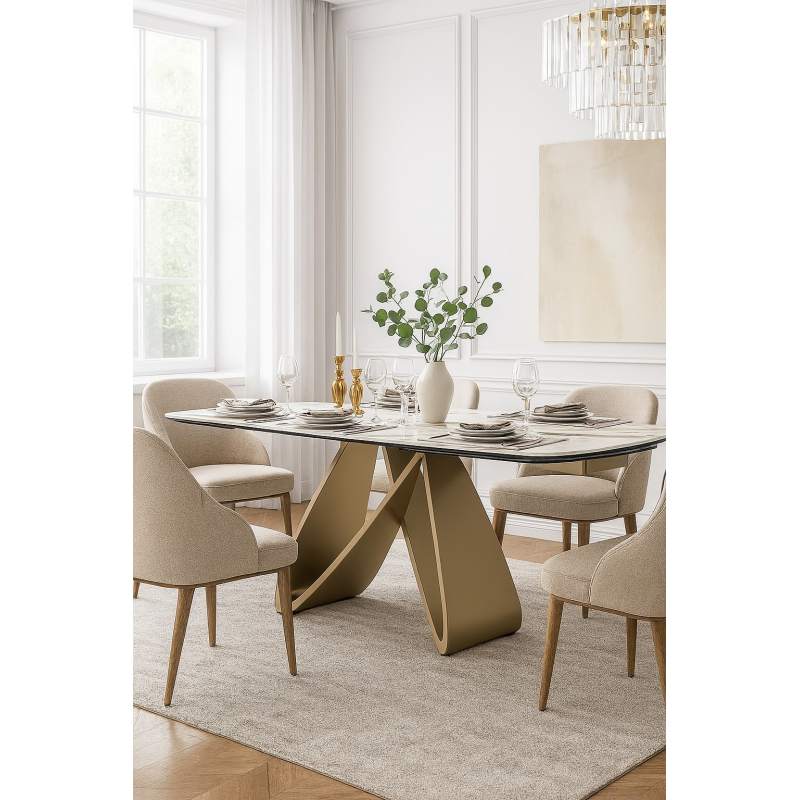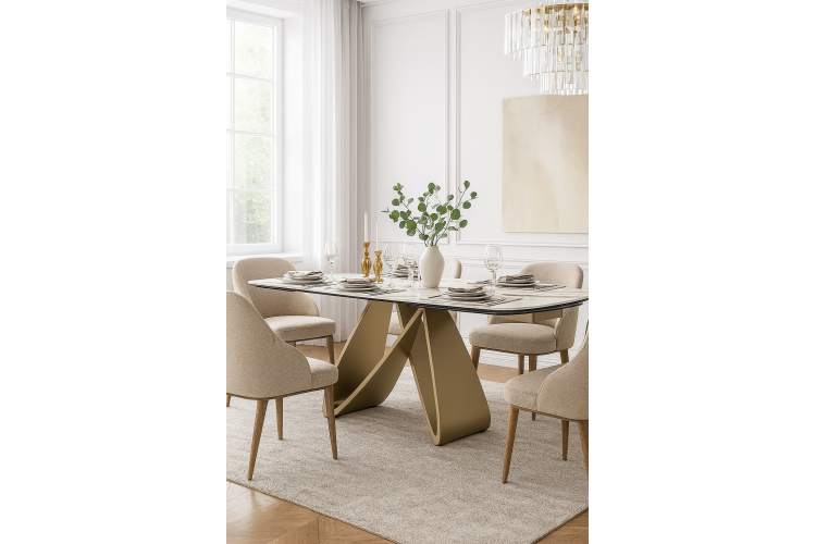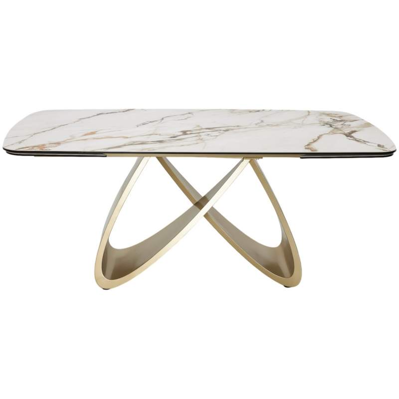 Стол PALACIO 180 KL-188 Контрастный мрамор матовый, итальянская керамика/ Шампань, ®DISAUR