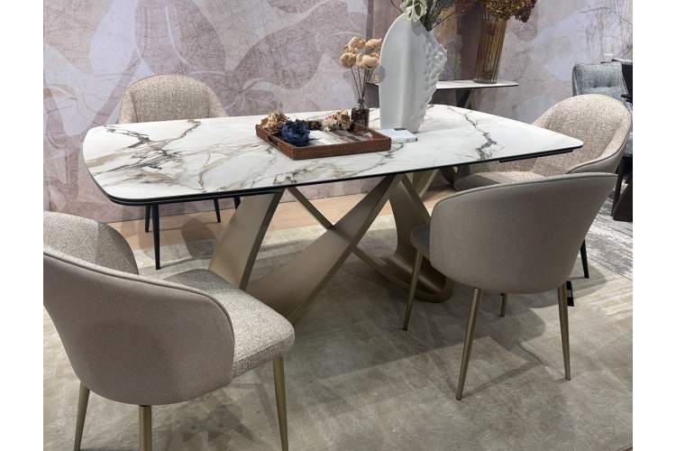 Стол дизайнерский PALACIO 180 с матовой керамической столешницей контрастный мрамор