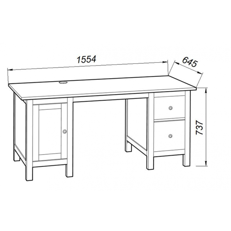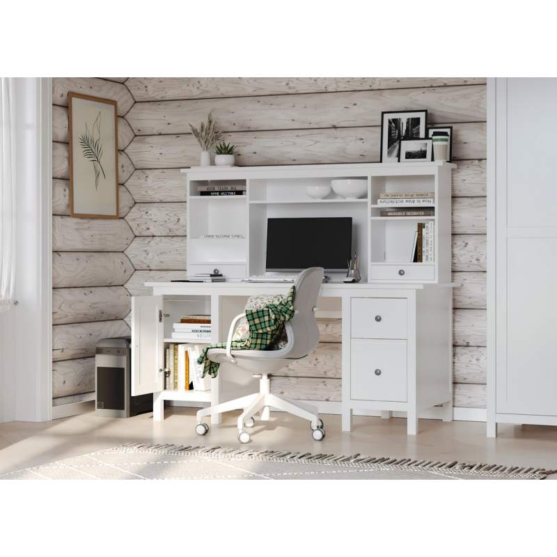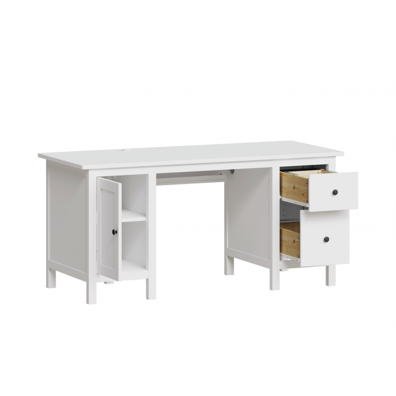 Стол письменный 12 Кантри, 1554х645х737, цвет Белый. Стол с двумя тумбами, в левой находится переставная полка, в правой - два выдвижных ящика разной высоты. Изготовлен из массива хвойных пород. Может доукомплектовываться надстройкой стола. Мебель для жилых помещений. Гарантийный срок 18 месяцев.