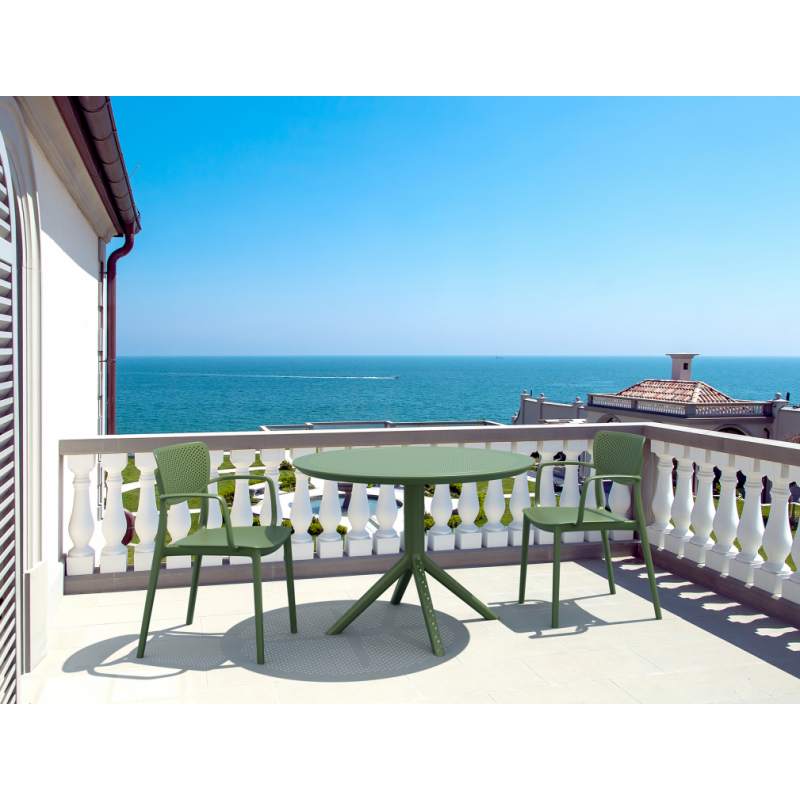 Стол пластиковый Sky Table Ø105 Siesta Contract оливковый
