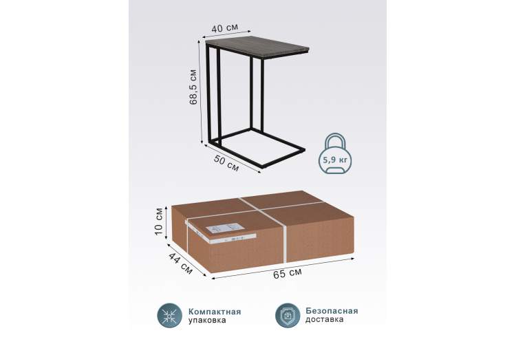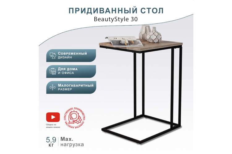 Стол придиванный BeautyStyle 30 дуб сонома/черный