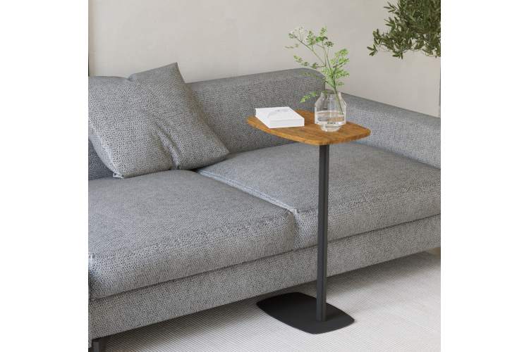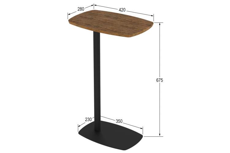 Придиванный столик Дей создаст уютную атмосферу в Вашем доме или квартире. Деревянная прямоугольная столешница с закругленными углами выполнена из МДФ. Металлическая опора и основание обеспечивают прочность и надёжность конструкции. Стильное и практичное изделие прекрасно впишется в любой интерьер, будь то гостиная, кабинет или офис.