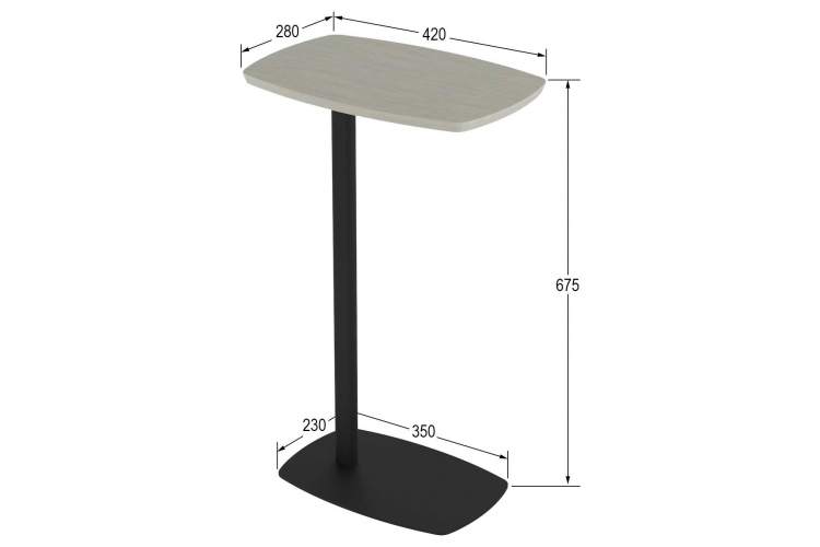 Придиванный столик Дей создаст уютную атмосферу в Вашем доме или квартире. Деревянная прямоугольная столешница с закругленными углами выполнена из МДФ. Металлическая опора и основание обеспечивают прочность и надёжность конструкции. Стильное и практичное изделие прекрасно впишется в любой интерьер, будь то гостиная, кабинет или офис.