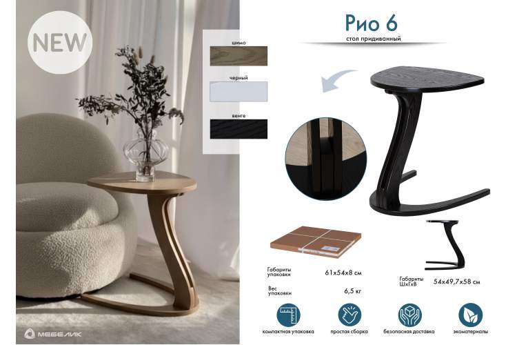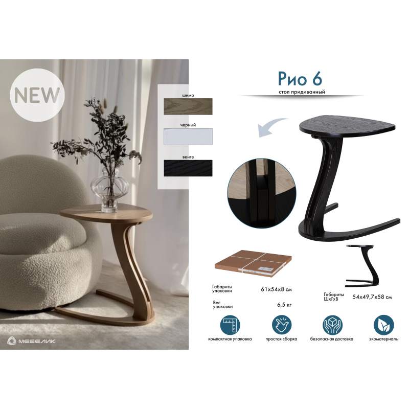 Журнальный стол Рио 6 — это новый впечатляющий акцент для вашего домашнего интерьера. Стол выполнен из качественного шпона берёзы. Надёжные материалы гарантируют долгую службу изделия и сопротивление износу. Основание имеет вид бумеранга, а изогнутая опора подчёркивает изящество столешницы в форме мягкого треугольника. Всё это придаёт Рио 6 современный технологичный стиль. Данный стол крайне функционален. Он справится с ролью журнального, приставного или прикроватного. На ваш выбор предоставлены три стильные расцветки.