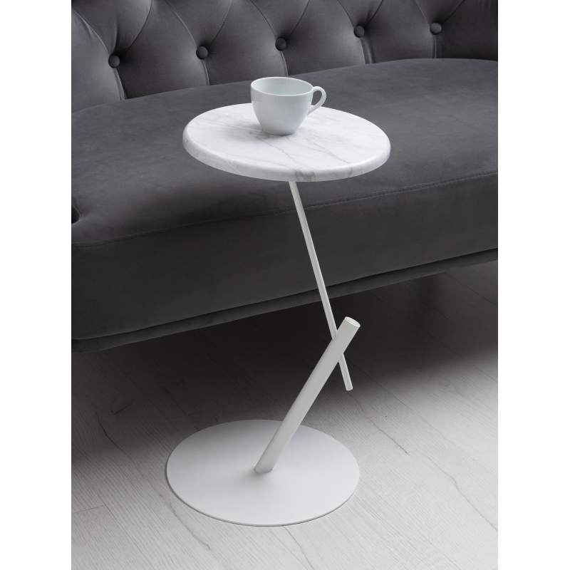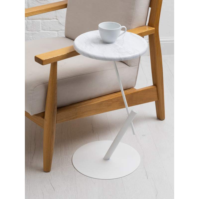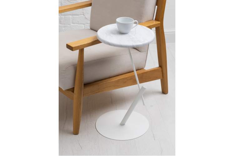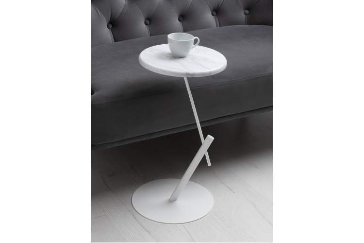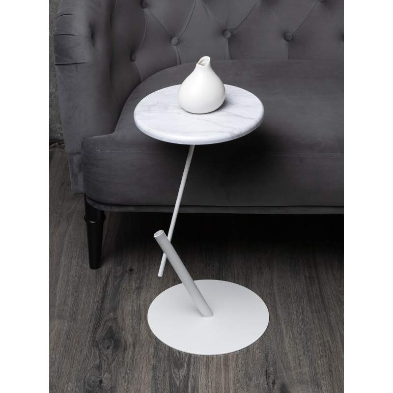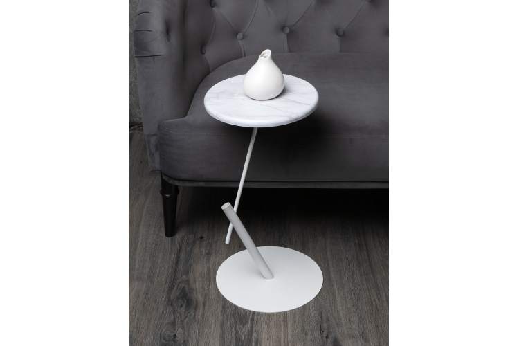 Стол приставной круглый МеталлАрт М015 белый мрамор/белый