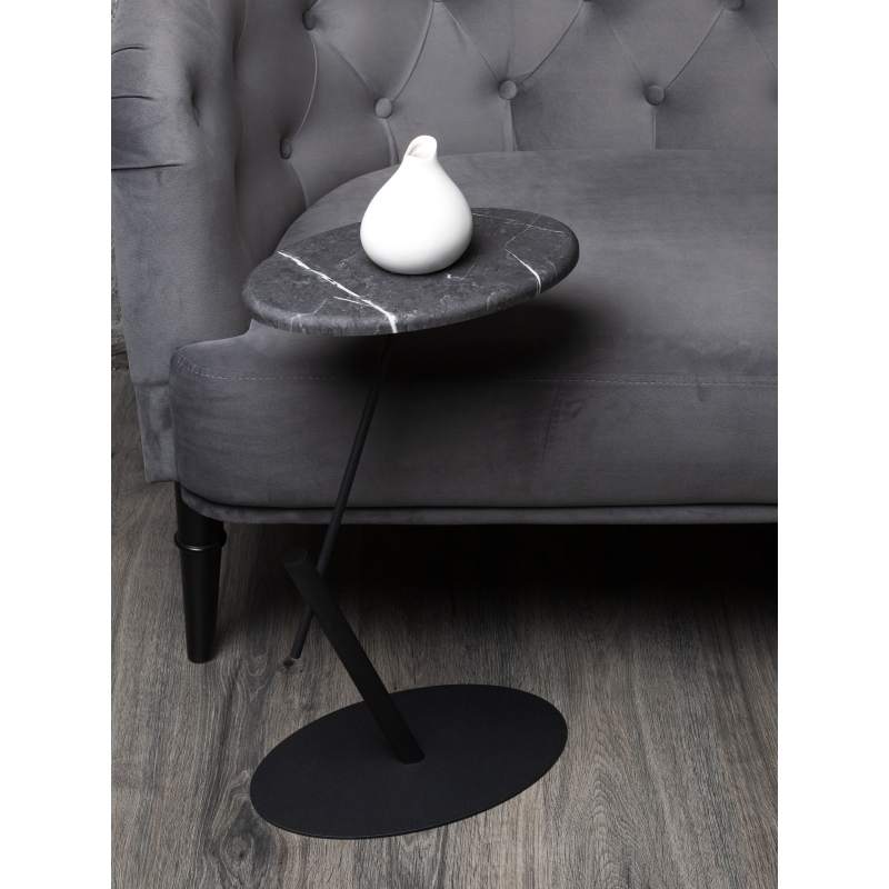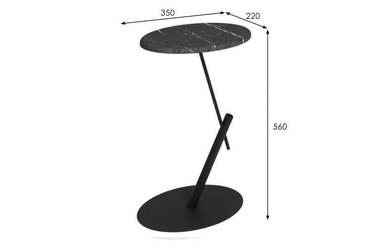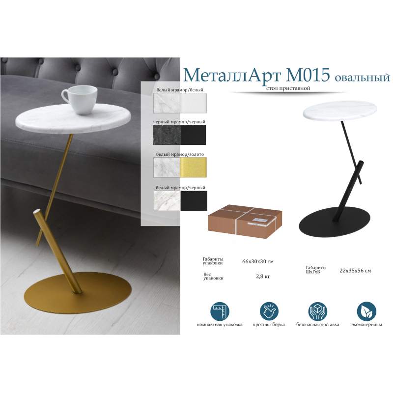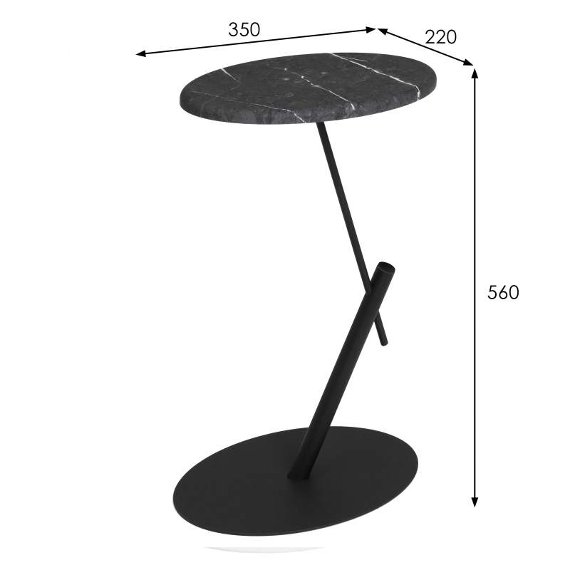 Стол приставной овальный МеталлАрт М015 черный мрамор/черный