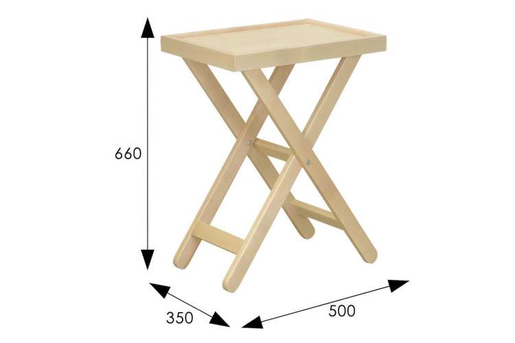 Раскладной столик выполнен из экологически чистого и долговечного материала – массива берёзы. Он обладает простым и лаконичным дизайном, который притягивает взгляд. Деревянное изделие удачно дополнит интерьер квартиры или дома в эко-стиле. Прочная конструкция выдерживает нагрузку до тридцати килограмм. Складные свойства столика делают его универсальным и позволяют использовать даже в небольших пространствах.