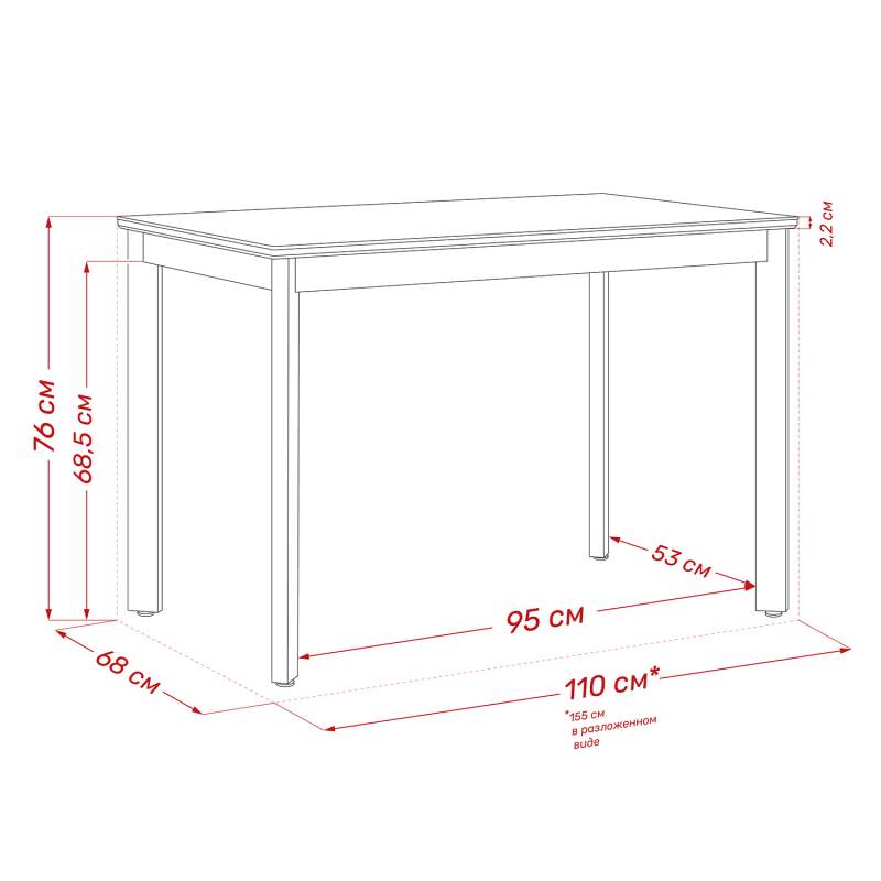 | Размер столешницы в разложенном виде | 680x1550 мм. |
