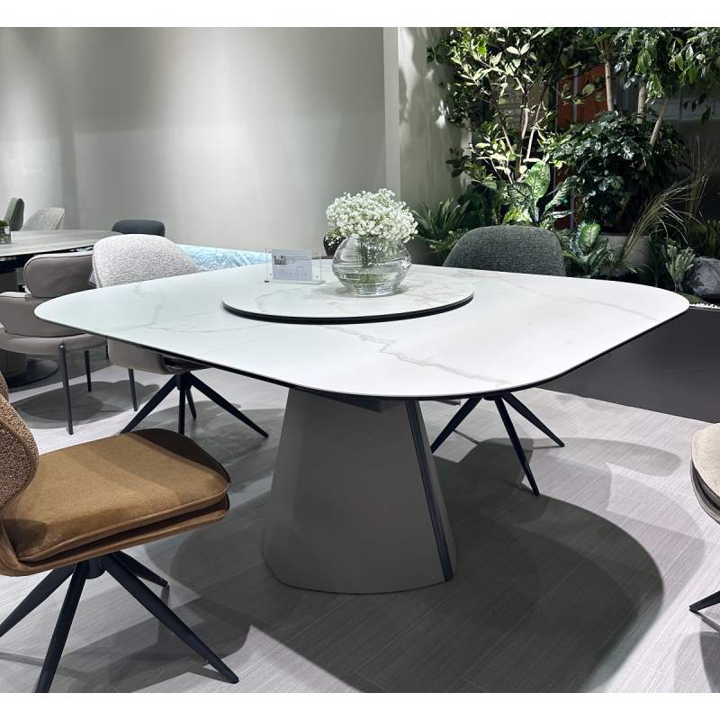 Стол RUBEN 132 TL-109 Серый мрамор, испанская керамика, стекло / Латте, ®DISAUR