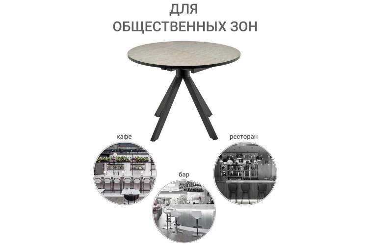 Стол Rudolf круглый раскладной 100-130x100x75см, Бетон слюда, чёрный