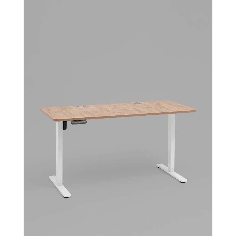 Стол с регулировкой высоты, 1 мотор, память 3 уровня высоты,белый, 140*60 см, светлое дерево