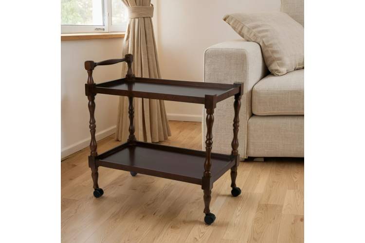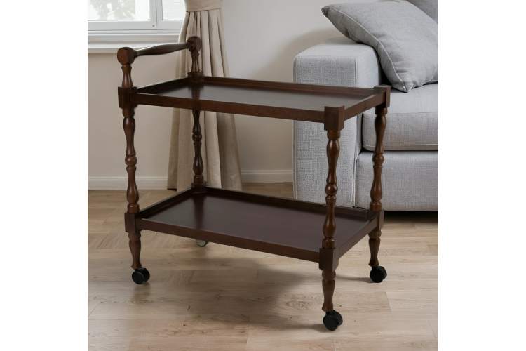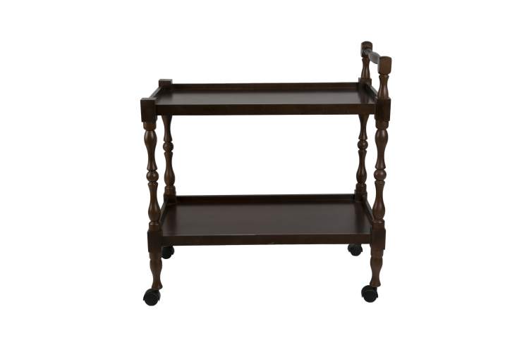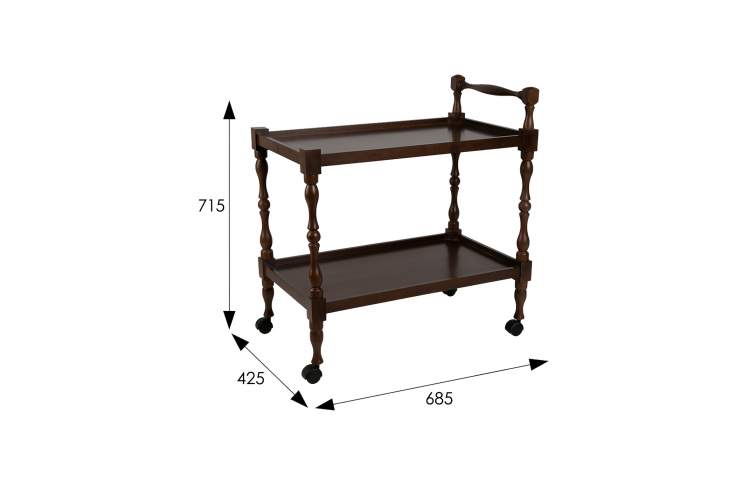 Это скорее практичный, нежели стильный предмет. В этом столике все предусмотрено для того, чтобы пользоваться им было удобно и безопасно. Ограничители на столешнице не дадут предметам сервировки съехать с нее при движении.