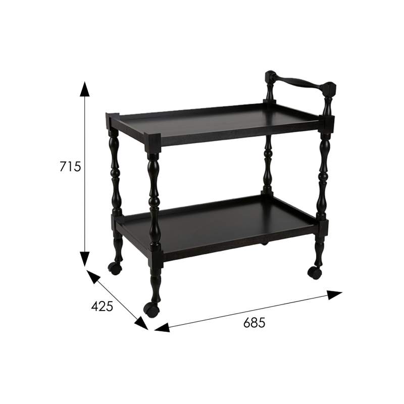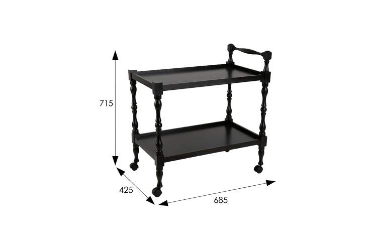 Это скорее практичный, нежели стильный предмет. В этом столике все предусмотрено для того, чтобы пользоваться им было удобно и безопасно. Ограничители на столешнице не дадут предметам сервировки съехать с нее при движении.