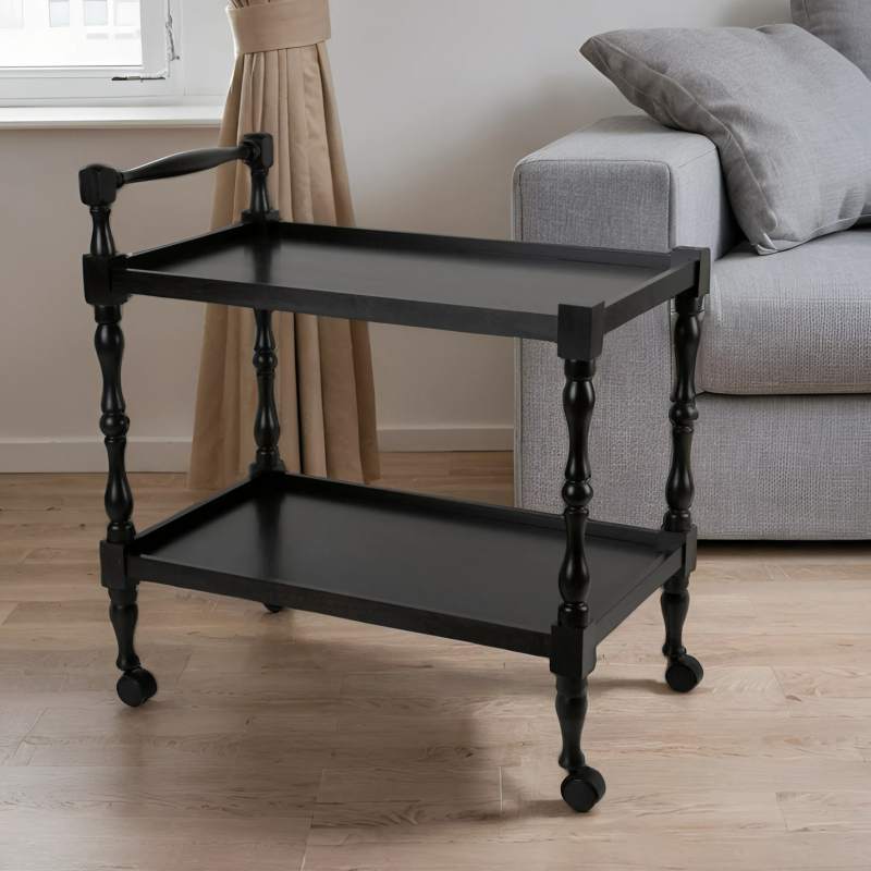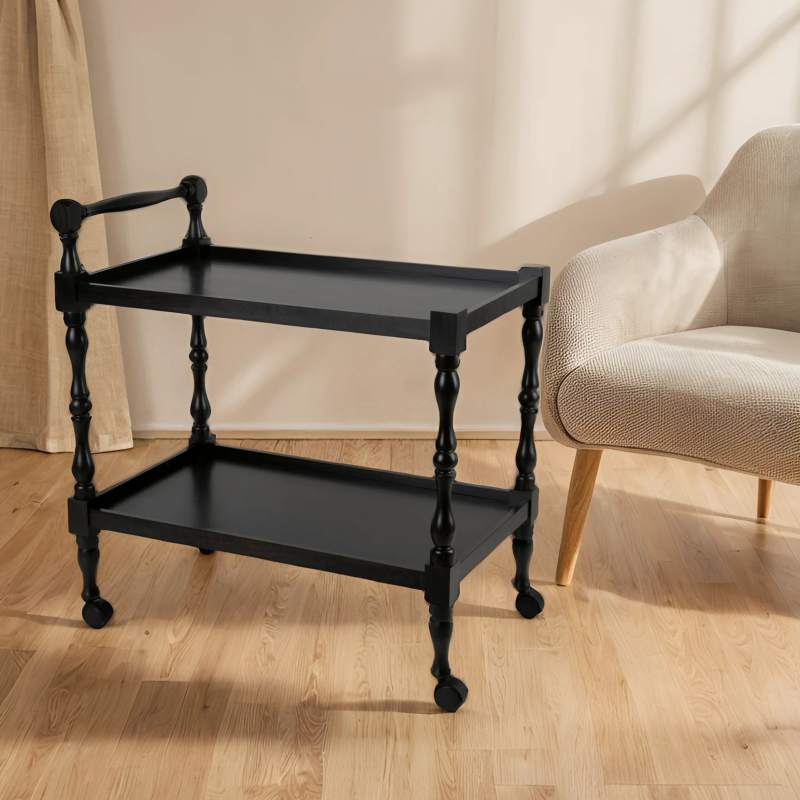 Тоже относится и к вместительной нижней полочке. Столик оснащен удобной ручкой для передвижения и колесами, которые имеют плавный, бесшумный, легкий ход. С этим столиком вы сможете за считанные минуты преобразить гостиную в столовую, просто подкатив его к дивану со всем необходимым для легкого перекуса у телевизора.___