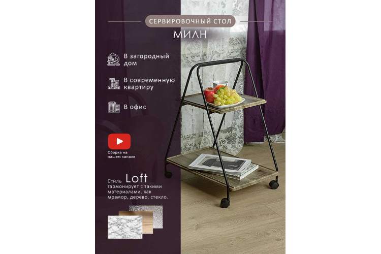 Стол сервировочный Милн черный/дуб крымский состаренный