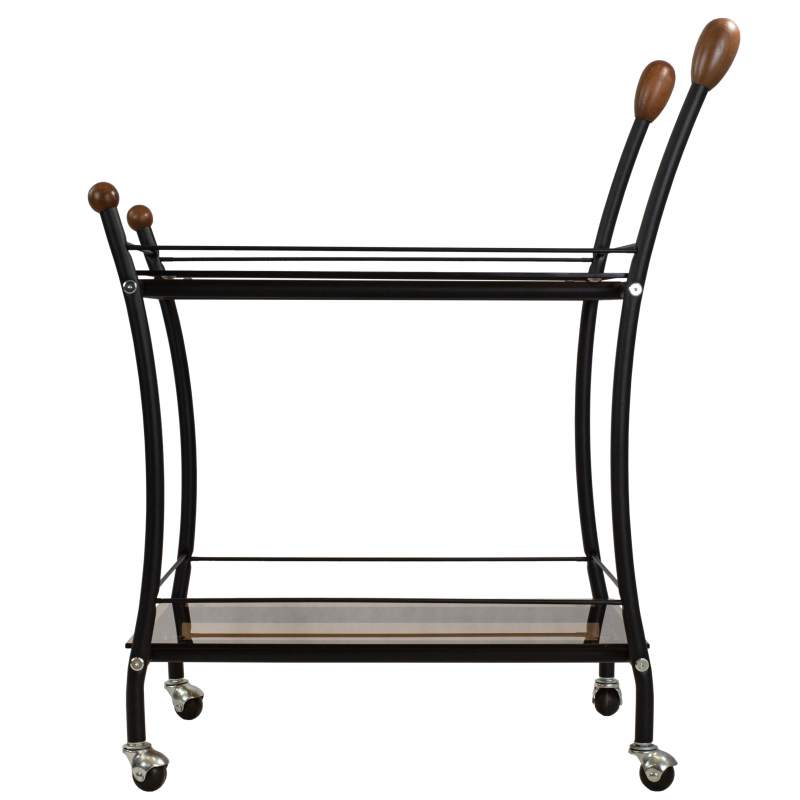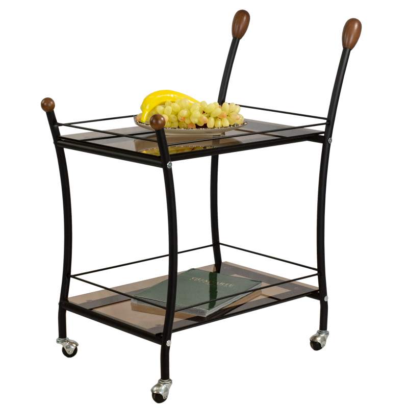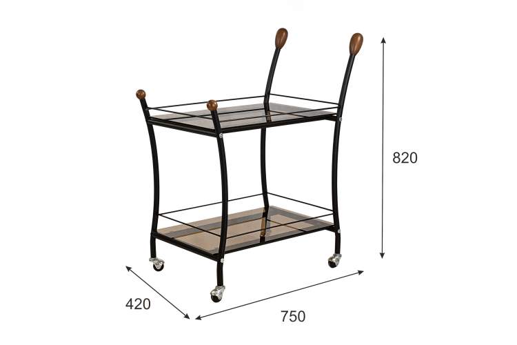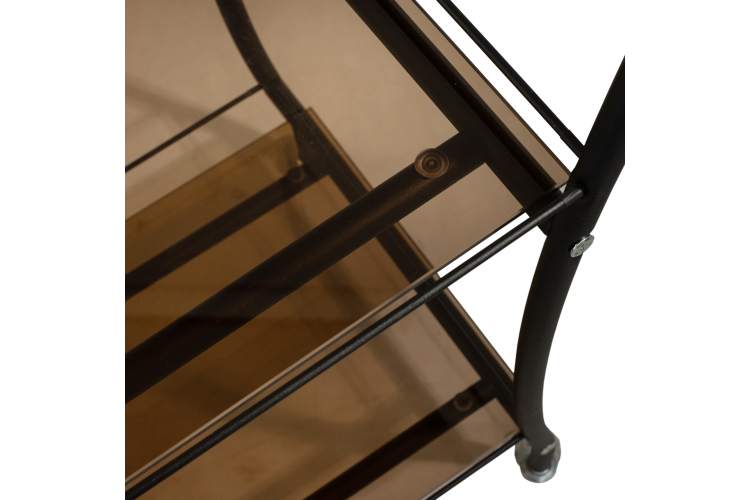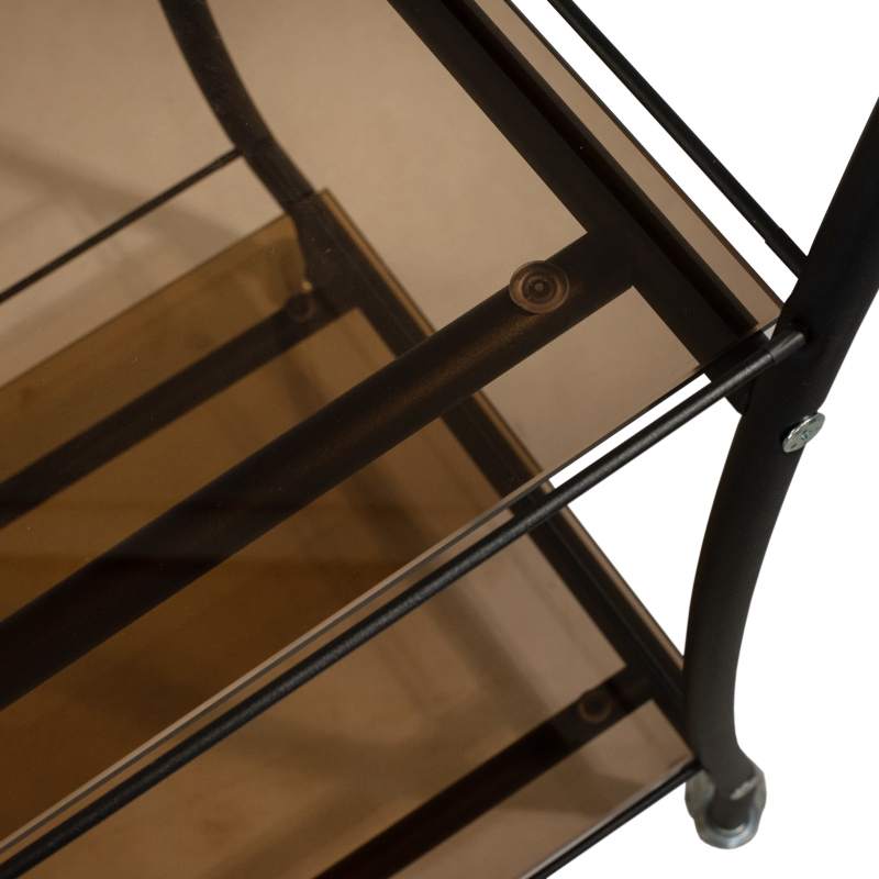 Многофункциональный сервировочный столик Поло станет отличным дополнением интерьера дома или квартиры. Металлический каркас выполнен из качественного материала, гарантирующего устойчивость и долговечность. Столешница и полка изготовлены из прочного стекла 6мм. Ограничители в виде трубочек из металла по бокам изделия, исключают возможность опрокидывания или соскальзывание предметов.