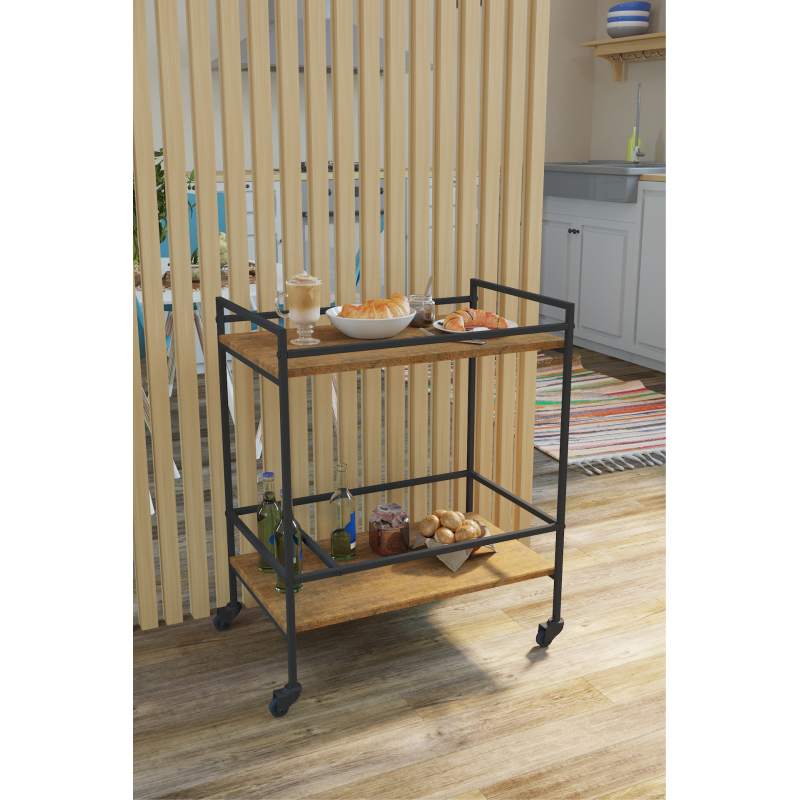 Сервировочный столик является не только незаменимым помощником на этапе сервировки праздничного стола, но и будет прекрасным дополнением интерьера обеденной зоны. Сервировочный столик «Спич» оснащен дополнительным местом для хранения напитков, вместительной столешницей и прочными поворотными колесами для плавного и бесшумного перемещения. Каркас сервировочного столика «Спич» выполнен из профильной трубы, столешница и полка - из прочного и влагостойкого материала МДФ, облицованного декоративным покрытием в современном цветовом решении.___
