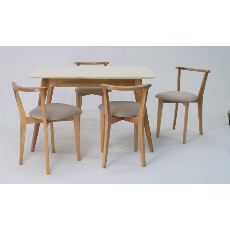 Стол Сканди 120 натур/слоновая кость со стульями Франк натур велюр бежевый