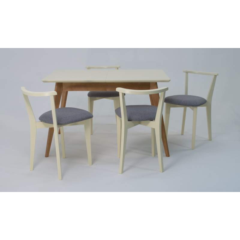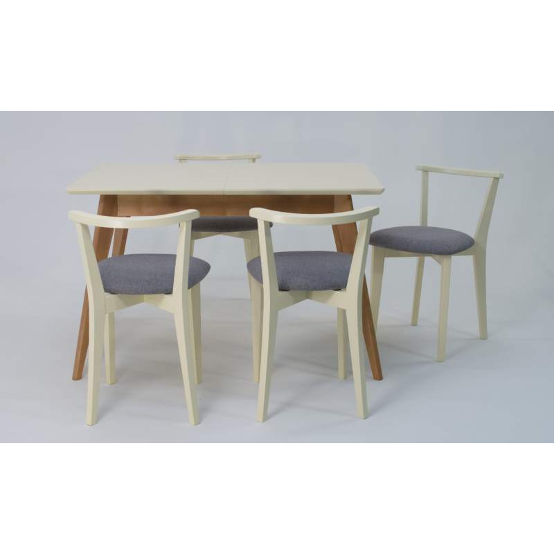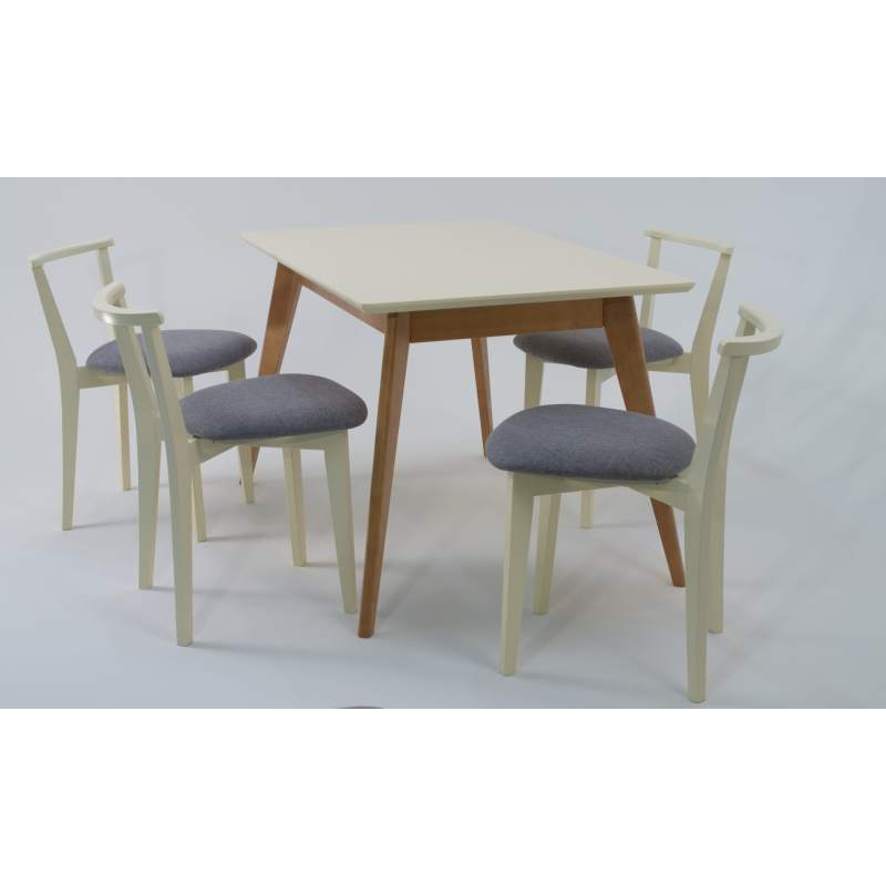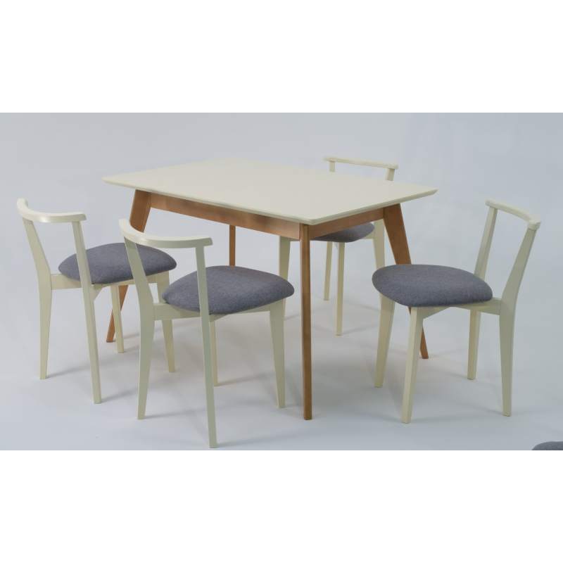 Стол Сканди 120 натур/слоновая кость со стульями Франк слоновая кость рогожка серый