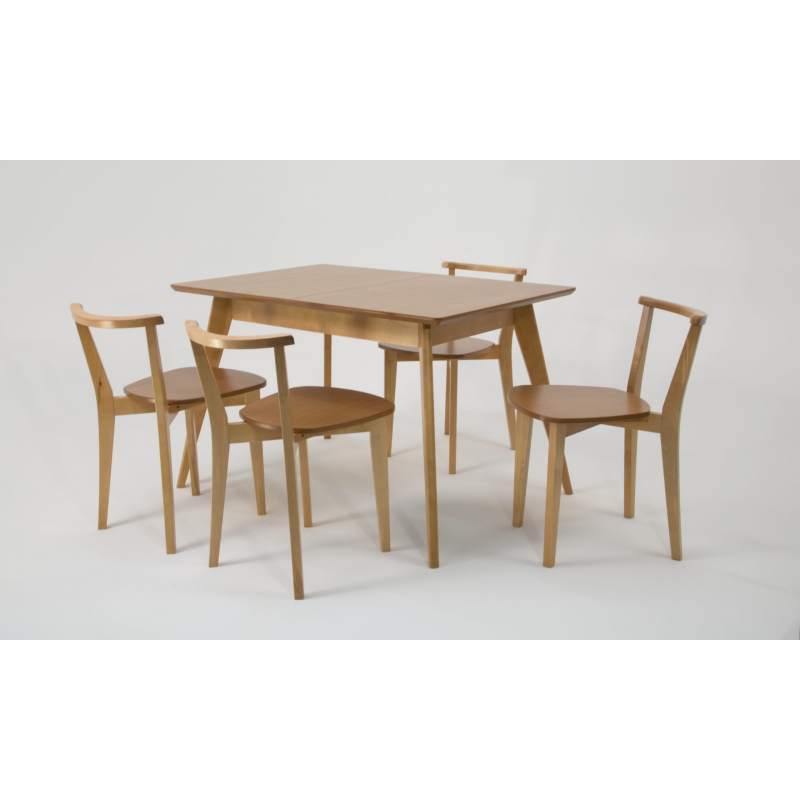 Комплект из деревянного стола Сканди на каркасе из натурального дерева и 4 стула Франк отлично подойдет к интерьеру, выдержанному в скандинавском стиле. Данный комплект станет центральным элементом в гостиной, столовой зоне, на кухне, позволив создать уютное обеденное место, где смогут собираться члены дружной семьи и их гости.У модели прямоугольная форма столешницы, со скруглением углов. Такое решение исключит риск сколов и обеспечит безопасность, в том числе, детям.Комплект выполнен в красивом цвете - натур. Сочетание изысканного дизайна и высокого качества исполнения - главная особенность комплекта.Столешница выполнена из материалов с великолепными эксплуатационными свойствами - МДФ (Материал создается на основе натуральной древесины. Практичен, надежен, имеет однородную гладкую структуру), шпон.Мебель проста в уходе - для поддержания первозданного вида достаточно использовать простую чуть влажную салфетку по мере необходимости.Состав комплекта: Стол F514106N00 120x80x75 и 4 стула R100701N0044x53x73
