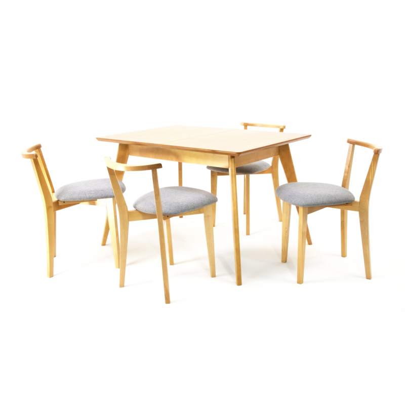 Комплект из деревянного стола Сканди на каркасе из натурального дерева и 4 стула Франк отлично подойдет к интерьеру, выдержанному в скандинавском стиле. Данный комплект станет центральным элементом в гостиной, столовой зоне, на кухне, позволив создать уютное обеденное место, где смогут собираться члены дружной семьи и их гости.У модели прямоугольная форма столешницы, со скруглением углов. Такое решение исключит риск сколов и обеспечит безопасность, в том числе, детям.Комплект выполнен в красивом цвете - натур. Сочетание изысканного дизайна и высокого качества исполнения - главная особенность комплекта.Столешница выполнена из материалов с великолепными эксплуатационными свойствами - МДФ (Материал создается на основе натуральной древесины. Практичен, надежен, имеет однородную гладкую структуру), шпон.Мебель проста в уходе - для поддержания первозданного вида достаточно использовать простую чуть влажную салфетку по мере необходимости.Состав комплекта: Стол F514106N00 120x80x75 и 4 стула R100701N0144x53x73