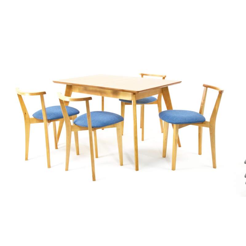 Стол Сканди 120 натур со стульями Франк натур рогожка синий
