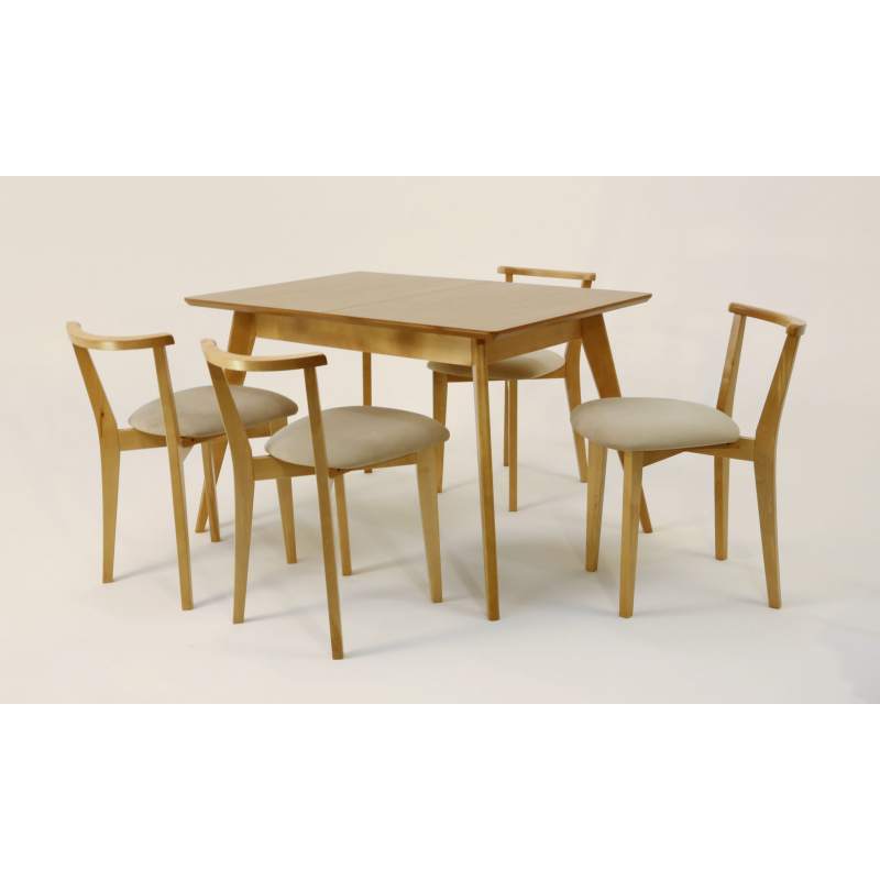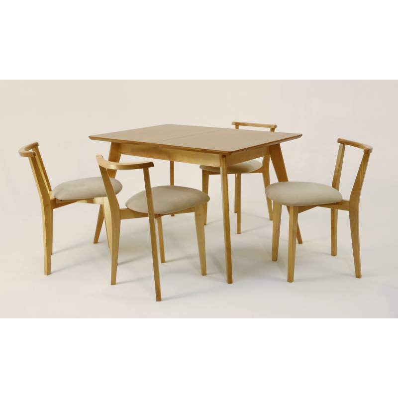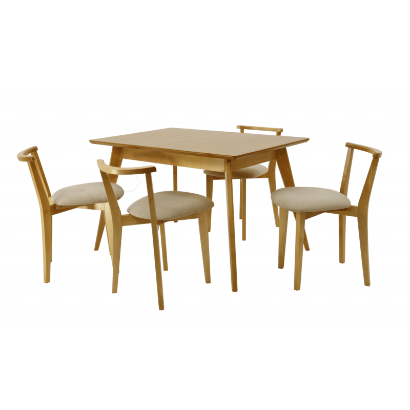 Комплект из деревянного стола Сканди на каркасе из натурального дерева и 4 стула Франк отлично подойдет к интерьеру, выдержанному в скандинавском стиле. Данный комплект станет центральным элементом в гостиной, столовой зоне, на кухне, позволив создать уютное обеденное место, где смогут собираться члены дружной семьи и их гости.У модели прямоугольная форма столешницы, со скруглением углов. Такое решение исключит риск сколов и обеспечит безопасность, в том числе, детям.Комплект выполнен в красивом цвете - натур. Сочетание изысканного дизайна и высокого качества исполнения - главная особенность комплекта.Столешница выполнена из материалов с великолепными эксплуатационными свойствами - МДФ (Материал создается на основе натуральной древесины. Практичен, надежен, имеет однородную гладкую структуру), шпон.Мебель проста в уходе - для поддержания первозданного вида достаточно использовать простую чуть влажную салфетку по мере необходимости.Состав комплекта: Стол F514106N00 120x80x75 и 4 стула R100701N0244x53x73