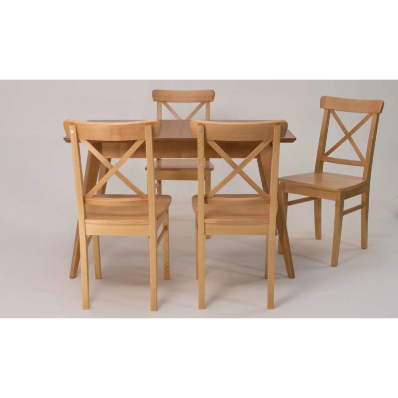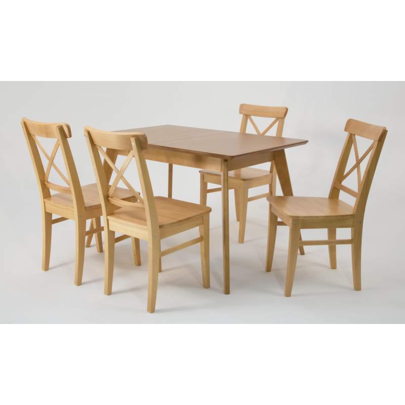 Комплект из деревянного стола Сканди на каркасе из натурального дерева и 4 стула Ингольф отлично подойдет к интерьеру, выдержанному в скандинавском стиле. Данный комплект станет центральным элементом в гостиной, столовой зоне, на кухне, позволив создать уютное обеденное место, где смогут собираться члены дружной семьи и их гости.У модели прямоугольная форма столешницы, со скруглением углов. Такое решение исключит риск сколов и обеспечит безопасность, в том числе, детям.Комплект выполнен в красивом цвете - натур. Сочетание изысканного дизайна и высокого качества исполнения - главная особенность комплекта.Столешница выполнена из материалов с великолепными эксплуатационными свойствами - МДФ (Материал создается на основе натуральной древесины. Практичен, надежен, имеет однородную гладкую структуру), шпон.Мебель проста в уходе - для поддержания первозданного вида достаточно использовать простую чуть влажную салфетку по мере необходимости.Состав комплекта: Стол F514106N00 120x80x75 и 4 стула R100743N00 55x43x90
