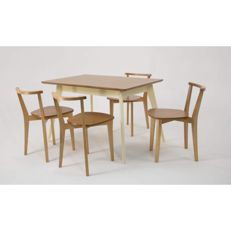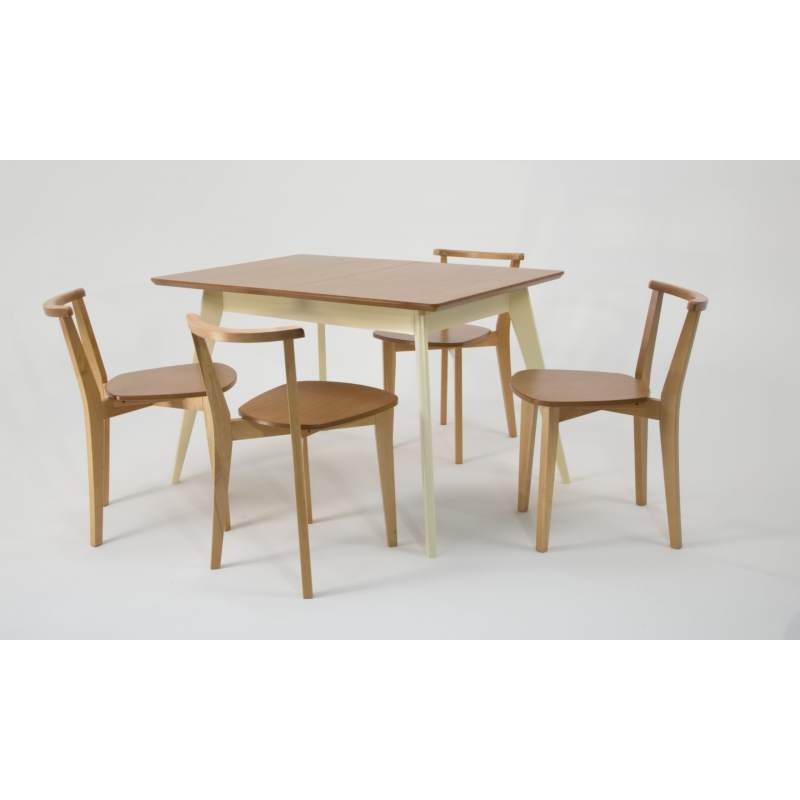 Стол Сканди 120 слоновая кость/натур со стульями Франк натур