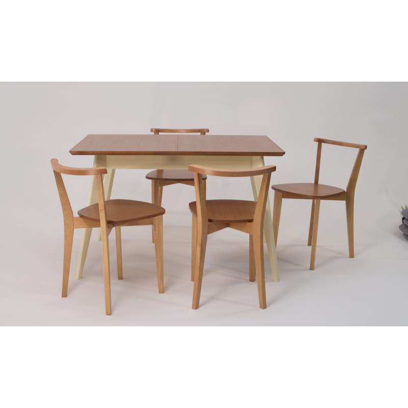 Комплект из деревянного стола Сканди на каркасе из натурального дерева и 4 стула Франк отлично подойдет к интерьеру, выдержанному в скандинавском стиле. Данный комплект станет центральным элементом в гостиной, столовой зоне, на кухне, позволив создать уютное обеденное место, где смогут собираться члены дружной семьи и их гости.У модели прямоугольная форма столешницы, со скруглением углов. Такое решение исключит риск сколов и обеспечит безопасность, в том числе, детям.Комплект выполнен в красивй комбинации цветов - натур и слоновая кость. Сочетание изысканного дизайна и высокого качества исполнения - главная особенность комплекта.Столешница выполнена из материалов с великолепными эксплуатационными свойствами - МДФ (Материал создается на основе натуральной древесины. Практичен, надежен, имеет однородную гладкую структуру), шпон.Мебель проста в уходе - для поддержания первозданного вида достаточно использовать простую чуть влажную салфетку по мере необходимости.Состав комплекта: Стол F514104SUN 120x80x75 и 4 стула R100701N00 44x53x73