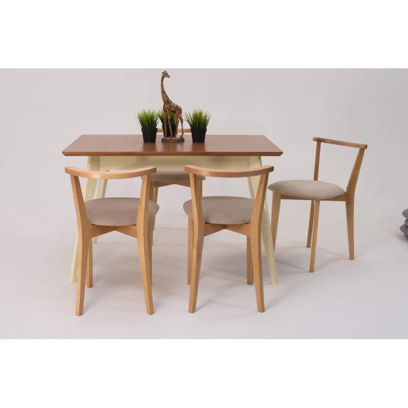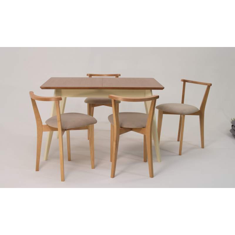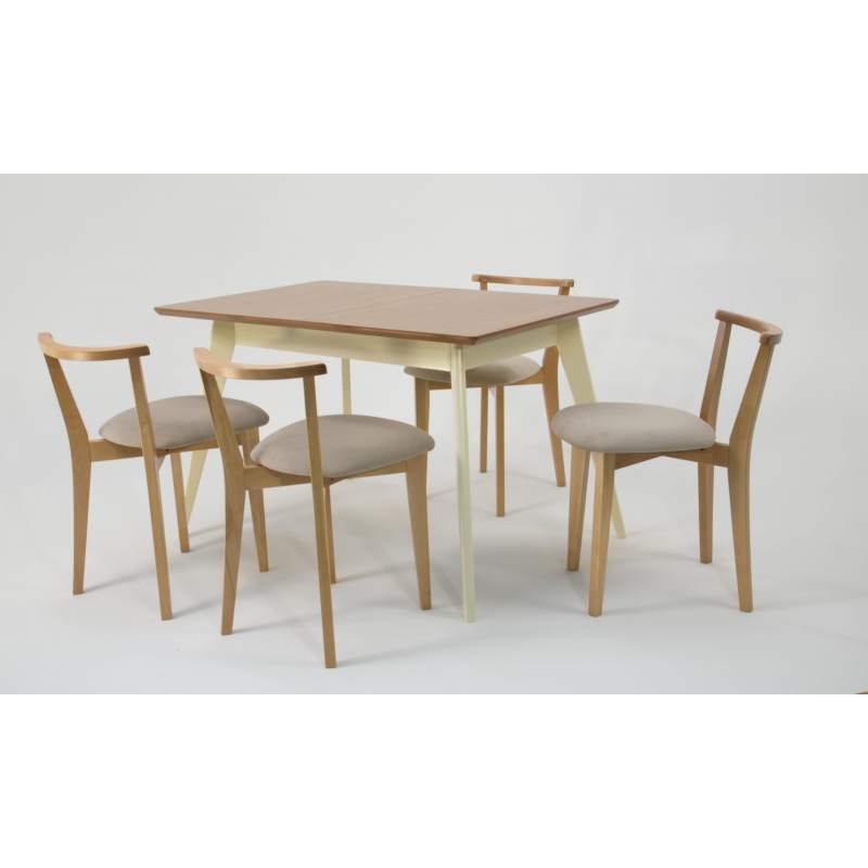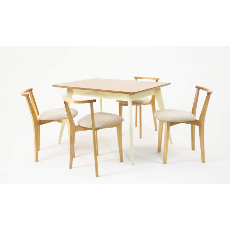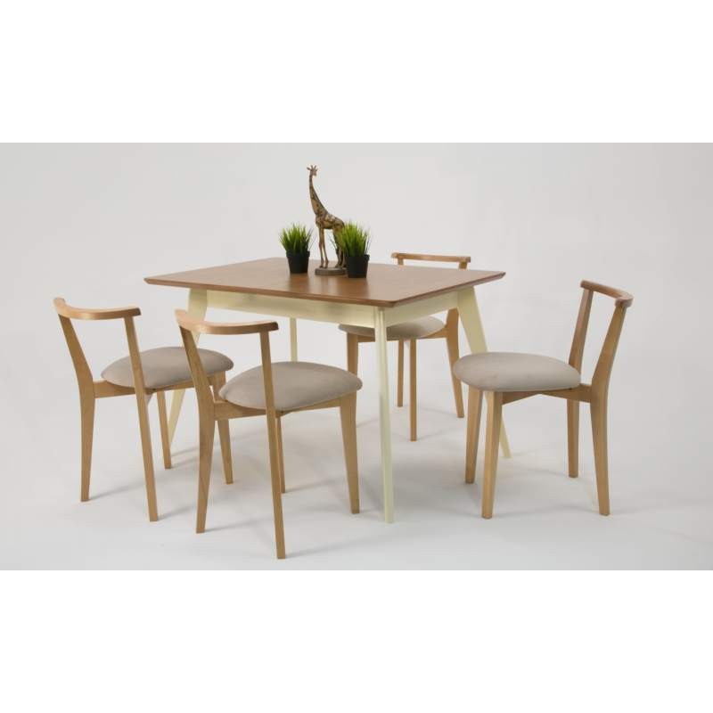 Стол Сканди 120 слоновая кость/натур со стульями Франк натур велюр бежевый