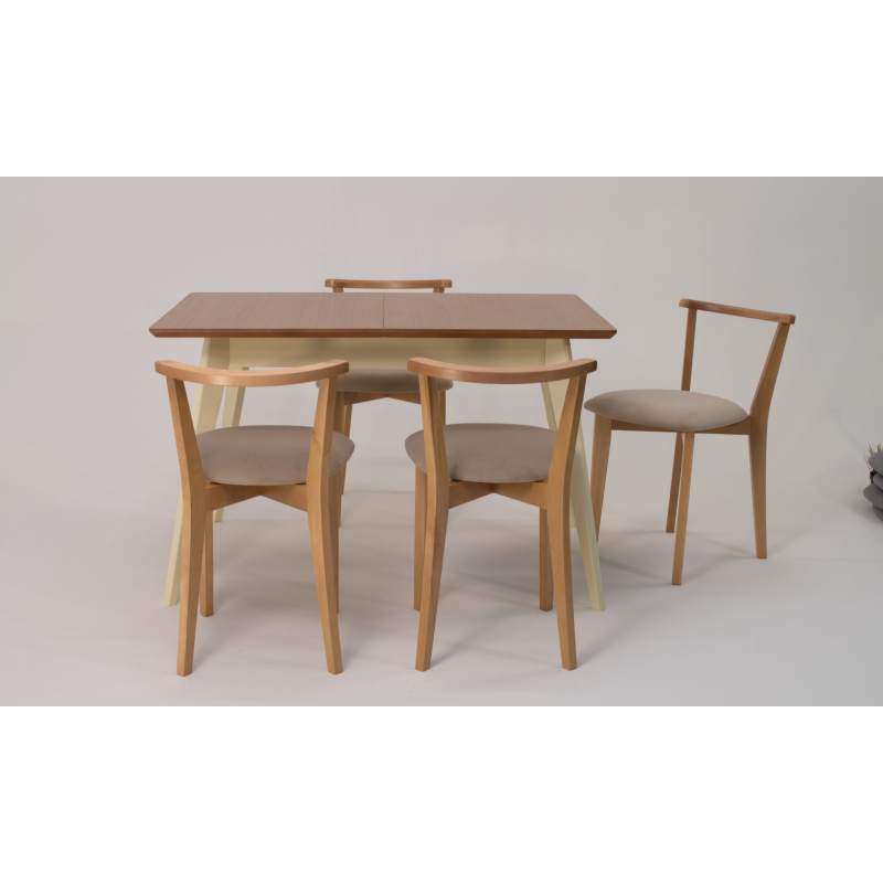Комплект из деревянного стола Сканди на каркасе из натурального дерева и 4 стула Франк отлично подойдет к интерьеру, выдержанному в скандинавском стиле. Данный комплект станет центральным элементом в гостиной, столовой зоне, на кухне, позволив создать уютное обеденное место, где смогут собираться члены дружной семьи и их гости.У модели прямоугольная форма столешницы, со скруглением углов. Такое решение исключит риск сколов и обеспечит безопасность, в том числе, детям.Комплект выполнен в красивй комбинации цветов - натур и слоновая кость. Сочетание изысканного дизайна и высокого качества исполнения - главная особенность комплекта.Столешница выполнена из материалов с великолепными эксплуатационными свойствами - МДФ (Материал создается на основе натуральной древесины. Практичен, надежен, имеет однородную гладкую структуру), шпон.Мебель проста в уходе - для поддержания первозданного вида достаточно использовать простую чуть влажную салфетку по мере необходимости.Состав комплекта: Стол F514104SUN 120x80x75 и 4 стула R101707N02 44x53x73