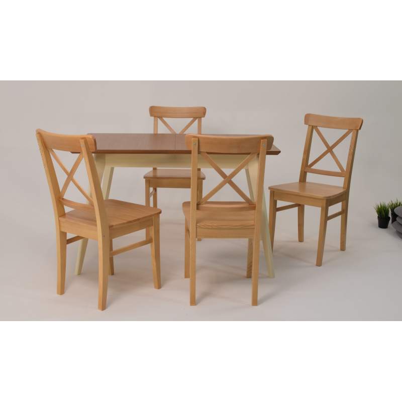 Комплект из деревянного стола Сканди на каркасе из натурального дерева и 4 стула Ингольф отлично подойдет к интерьеру, выдержанному в скандинавском стиле. Данный комплект станет центральным элементом в гостиной, столовой зоне, на кухне, позволив создать уютное обеденное место, где смогут собираться члены дружной семьи и их гости.У модели прямоугольная форма столешницы, со скруглением углов. Такое решение исключит риск сколов и обеспечит безопасность, в том числе, детям.Комплект выполнен в красивом цвете - натур. Сочетание изысканного дизайна и высокого качества исполнения - главная особенность комплекта.Столешница выполнена из материалов с великолепными эксплуатационными свойствами - МДФ (Материал создается на основе натуральной древесины. Практичен, надежен, имеет однородную гладкую структуру), шпон.Мебель проста в уходе - для поддержания первозданного вида достаточно использовать простую чуть влажную салфетку по мере необходимости.Состав комплекта: Стол F514104SUN 120x80x75 и 4 стула R100742N00 55x43x90
