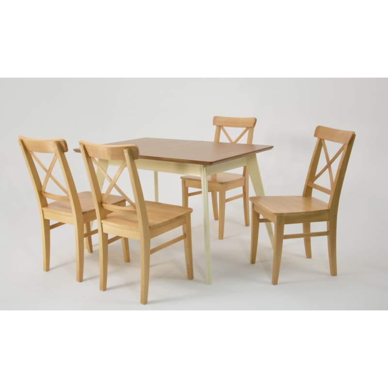 Стол Сканди 120 слоновая кость/натур со стульями Ингольф натур