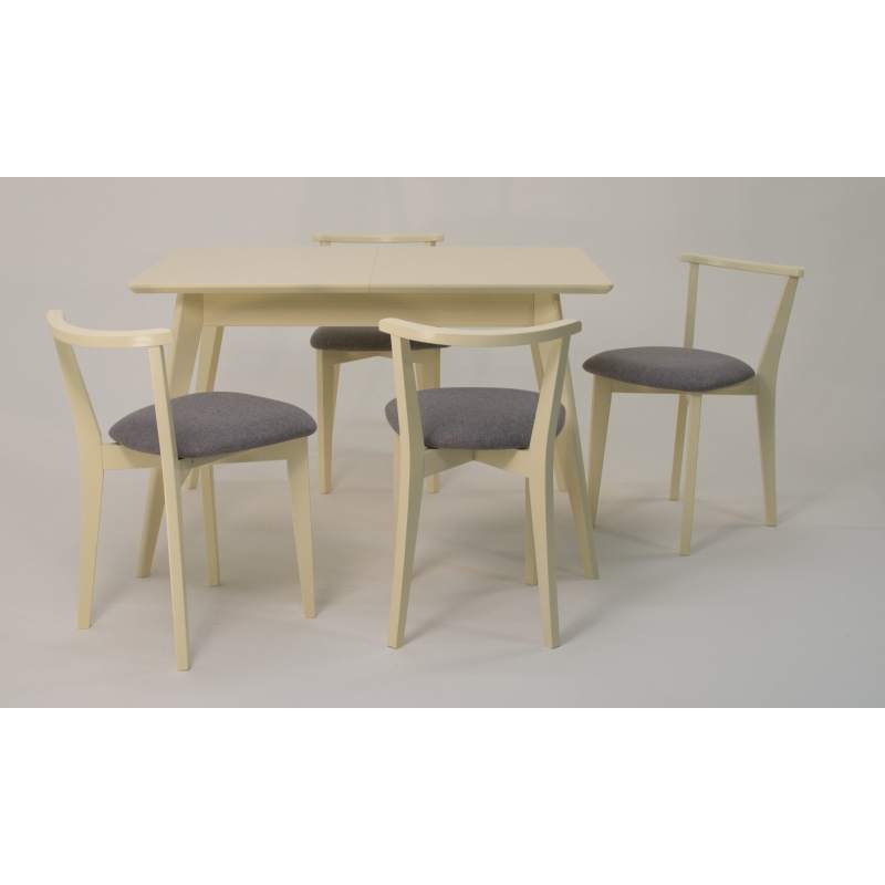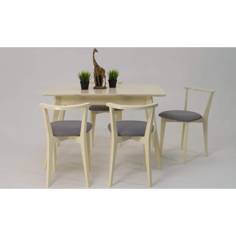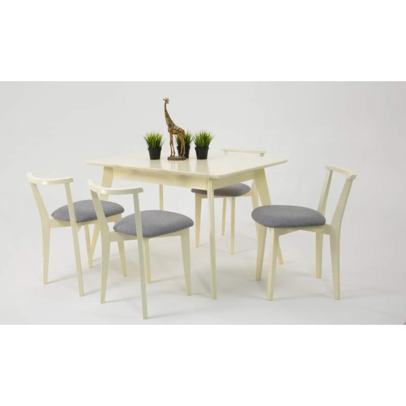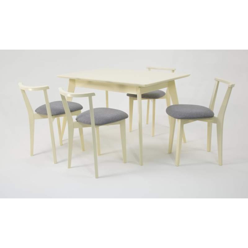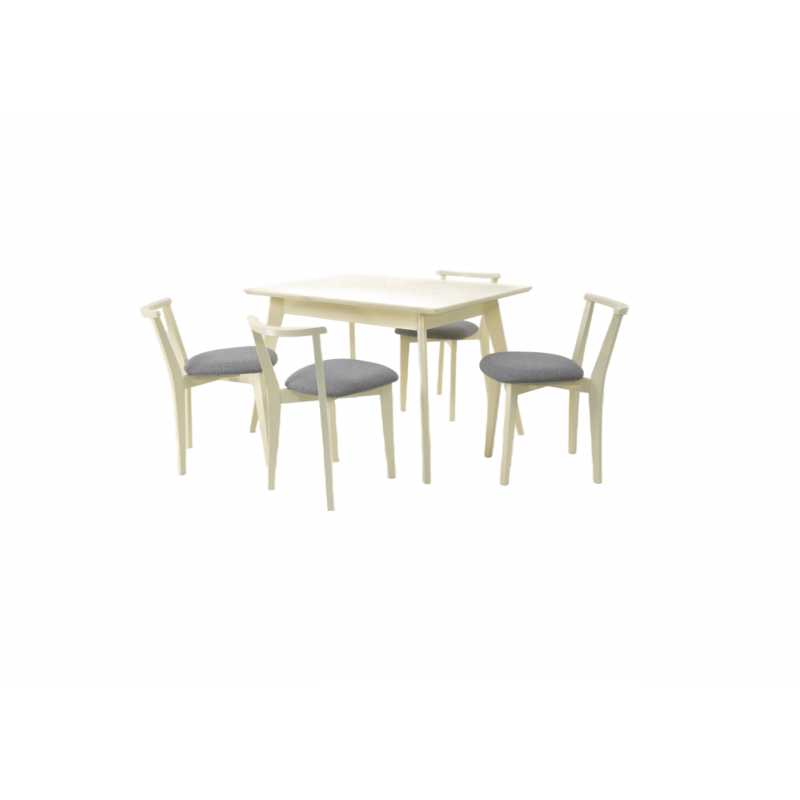 Комплект из деревянного стола Сканди на каркасе из натурального дерева и 4 стула Франк отлично подойдет к интерьеру, выдержанному в скандинавском стиле. Данный комплект станет центральным элементом в гостиной, столовой зоне, на кухне, позволив создать уютное обеденное место, где смогут собираться члены дружной семьи и их гости.У модели прямоугольная форма столешницы, со скруглением углов. Такое решение исключит риск сколов и обеспечит безопасность, в том числе, детям.Комплект выполнен в красивом цвете - слоновая кость. Сочетание изысканного дизайна и высокого качества исполнения - главная особенность комплекта.Столешница выполнена из материалов с великолепными эксплуатационными свойствами - МДФ (Материал создается на основе натуральной древесины. Практичен, надежен, имеет однородную гладкую структуру), шпон.Мебель проста в уходе - для поддержания первозданного вида достаточно использовать простую чуть влажную салфетку по мере необходимости.Состав комплекта: Стол F514100S00 120x80x75 и 4 стула R100709S01 44x53x73
