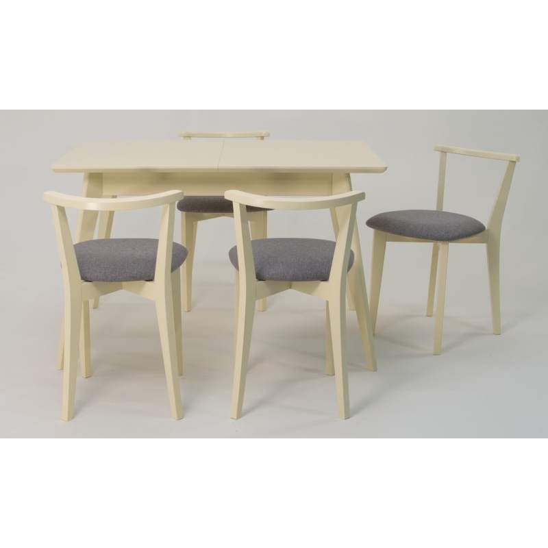 Стол Сканди 120 слоновая кость со стульями Франк слоновая кость рогожка серый