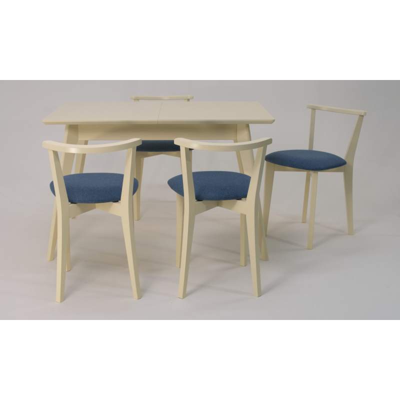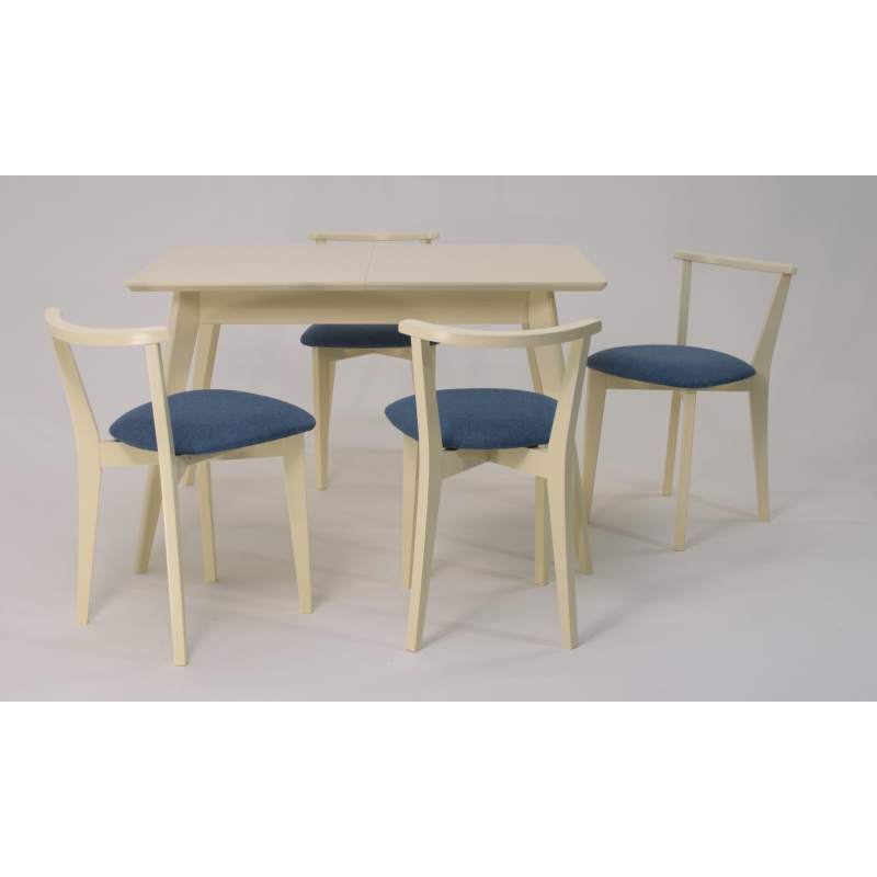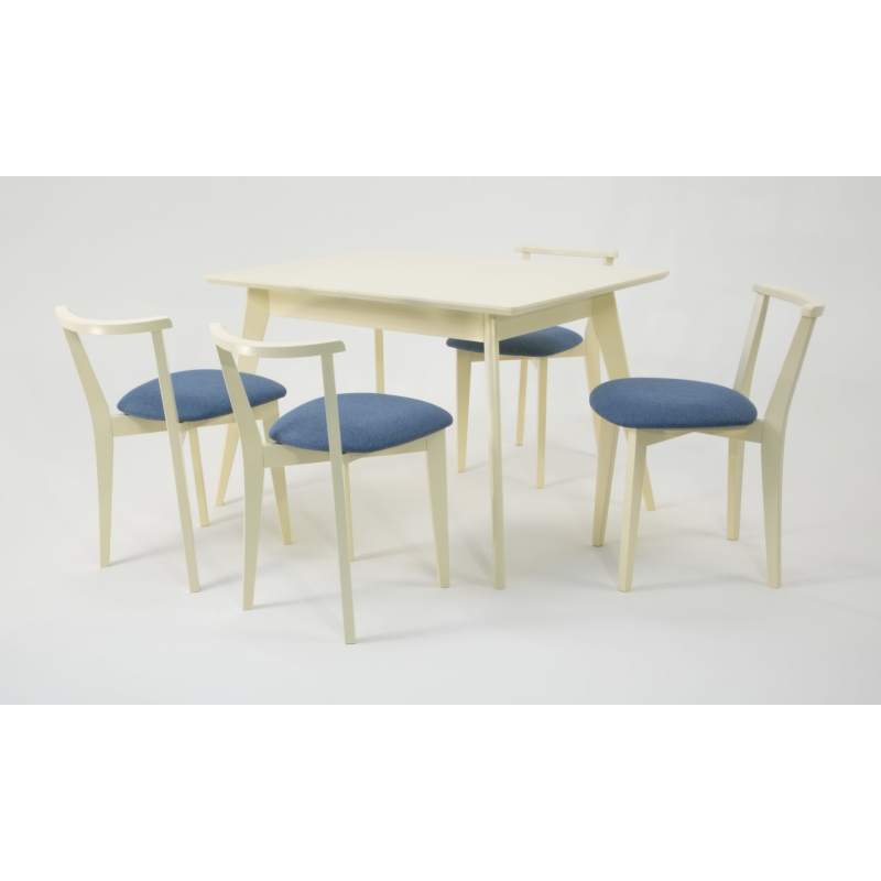 Стол Сканди 120 слоновая кость со стульями Франк слоновая кость рогожка синий