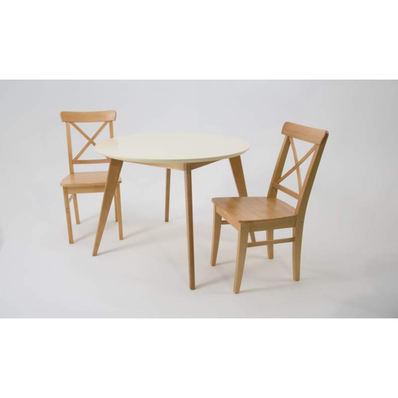 Комплект из деревянного стола Сканди на каркасе из натурального дерева и 2 стула Ингольф отлично подойдет к интерьеру, выдержанному в скандинавском стиле. Данный комплект станет центральным элементом в гостиной, столовой зоне, на кухне, позволив создать уютное обеденное место, где смогут собираться члены дружной семьи и их гости.У модели круглая форма столешницы. Такое решение исключит риск сколов и обеспечит безопасность, в том числе, детям.Комплект выполнен в красивой комбинации цветов - орех, слоновая кость. Сочетание изысканного дизайна и высокого качества исполнения - главная особенность комплекта.Столешница выполнена из материалов с великолепными эксплуатационными свойствами - МДФ (Материал создается на основе натуральной древесины. Практичен, надежен, имеет однородную гладкую структуру), шпон.Мебель проста в уходе - для поддержания первозданного вида достаточно использовать простую чуть влажную салфетку по мере необходимости.Состав комплекта:- стол F004102NUS- стулья R100743N00