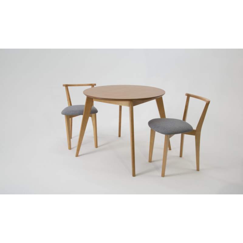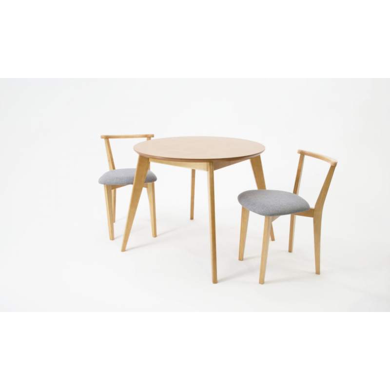 Комплект из деревянного стола Сканди на каркасе из натурального дерева и 2 стула Франк отлично подойдет к интерьеру, выдержанному в скандинавском стиле. Данный комплект станет центральным элементом в гостиной, столовой зоне, на кухне, позволив создать уютное обеденное место, где смогут собираться члены дружной семьи и их гости.У модели круглая форма столешницы. Такое решение исключит риск сколов и обеспечит безопасность, в том числе, детям.Комплект выполнен в красивом цвете - натуральный. Сочетание изысканного дизайна и высокого качества исполнения - главная особенность комплекта.Столешница выполнена из материалов с великолепными эксплуатационными свойствами - МДФ (Материал создается на основе натуральной древесины. Практичен, надежен, имеет однородную гладкую структуру), шпон.Мебель проста в уходе - для поддержания первозданного вида достаточно использовать простую чуть влажную салфетку по мере необходимости.Состав комплекта:- стол F004106N00- стулья R101707N01