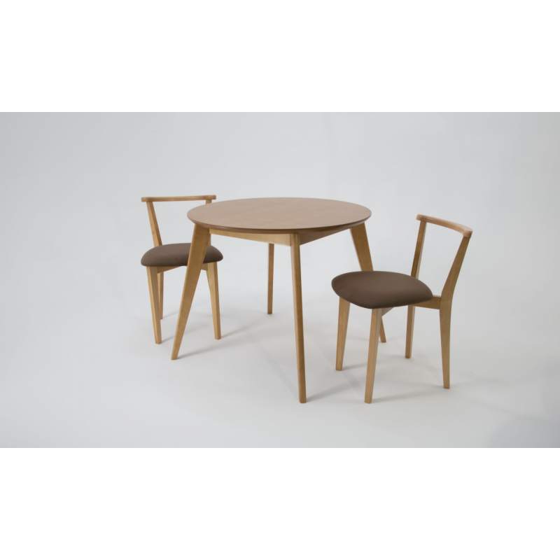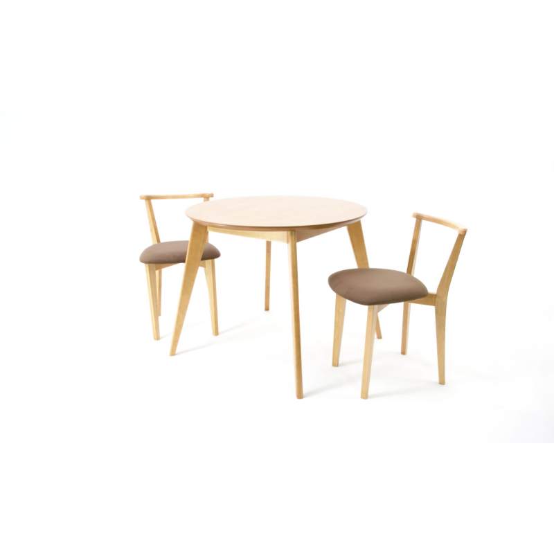 Комплект из деревянного стола Сканди на каркасе из натурального дерева и 2 стула Франк отлично подойдет к интерьеру, выдержанному в скандинавском стиле. Данный комплект станет центральным элементом в гостиной, столовой зоне, на кухне, позволив создать уютное обеденное место, где смогут собираться члены дружной семьи и их гости.У модели круглая форма столешницы. Такое решение исключит риск сколов и обеспечит безопасность, в том числе, детям.Комплект выполнен в красивом цвете - натуральный. Сочетание изысканного дизайна и высокого качества исполнения - главная особенность комплекта.Столешница выполнена из материалов с великолепными эксплуатационными свойствами - МДФ (Материал создается на основе натуральной древесины. Практичен, надежен, имеет однородную гладкую структуру), шпон.Мебель проста в уходе - для поддержания первозданного вида достаточно использовать простую чуть влажную салфетку по мере необходимости.Состав комплекта:- стол F004106N00- стулья R101707N04
